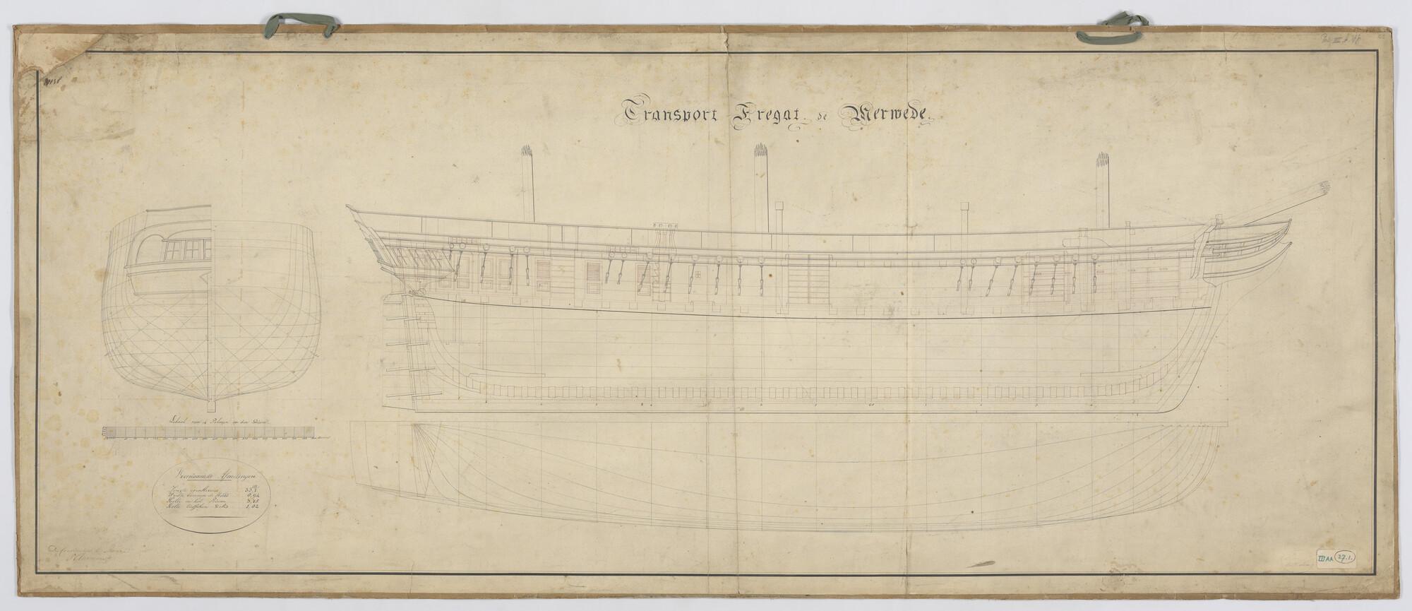 Lijnenplan van het transportfregat Zr.Ms. 'Merwede'