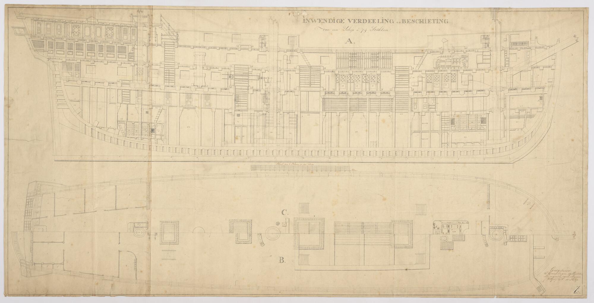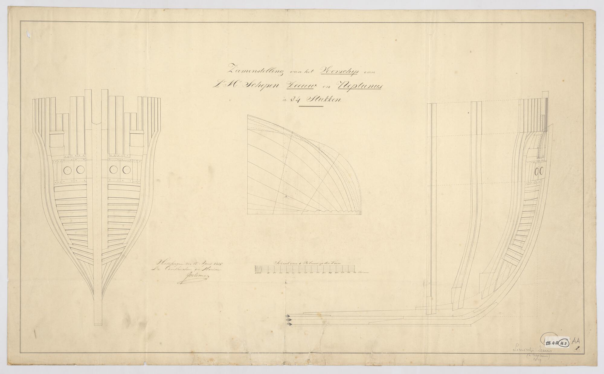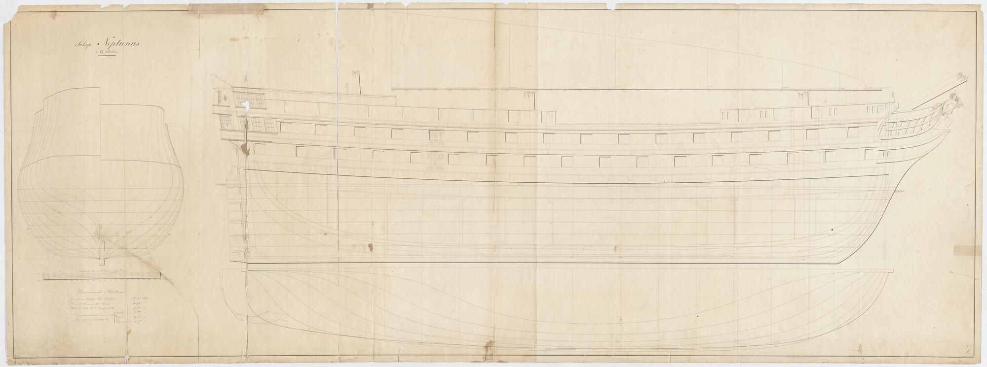Lijnenplan van het linieschip 'Neptunus' van 84 stukken