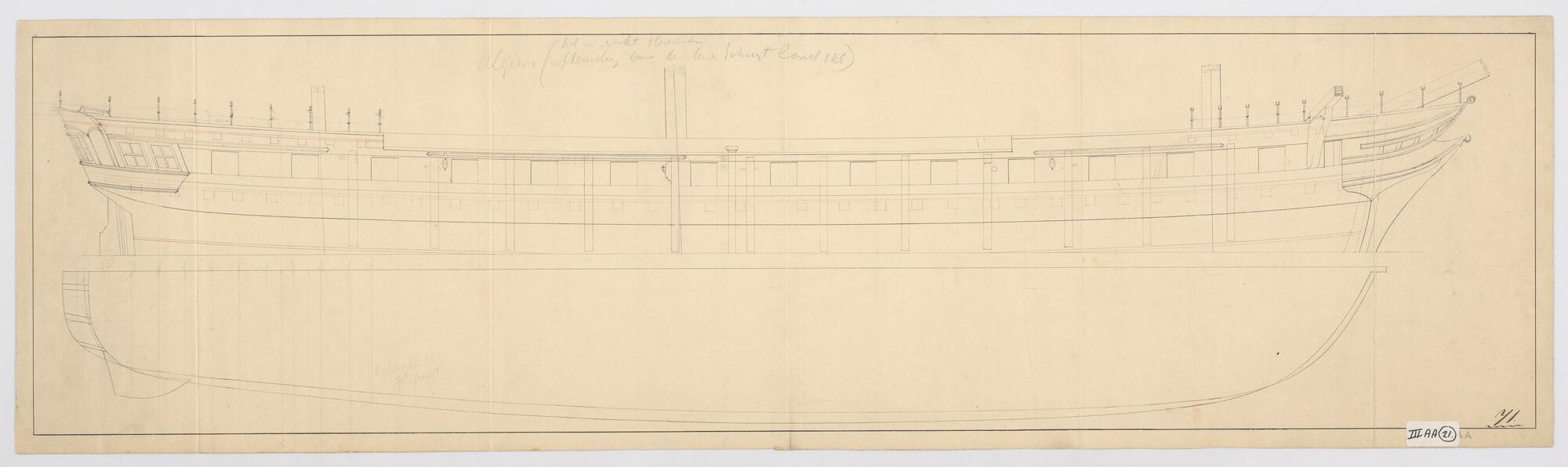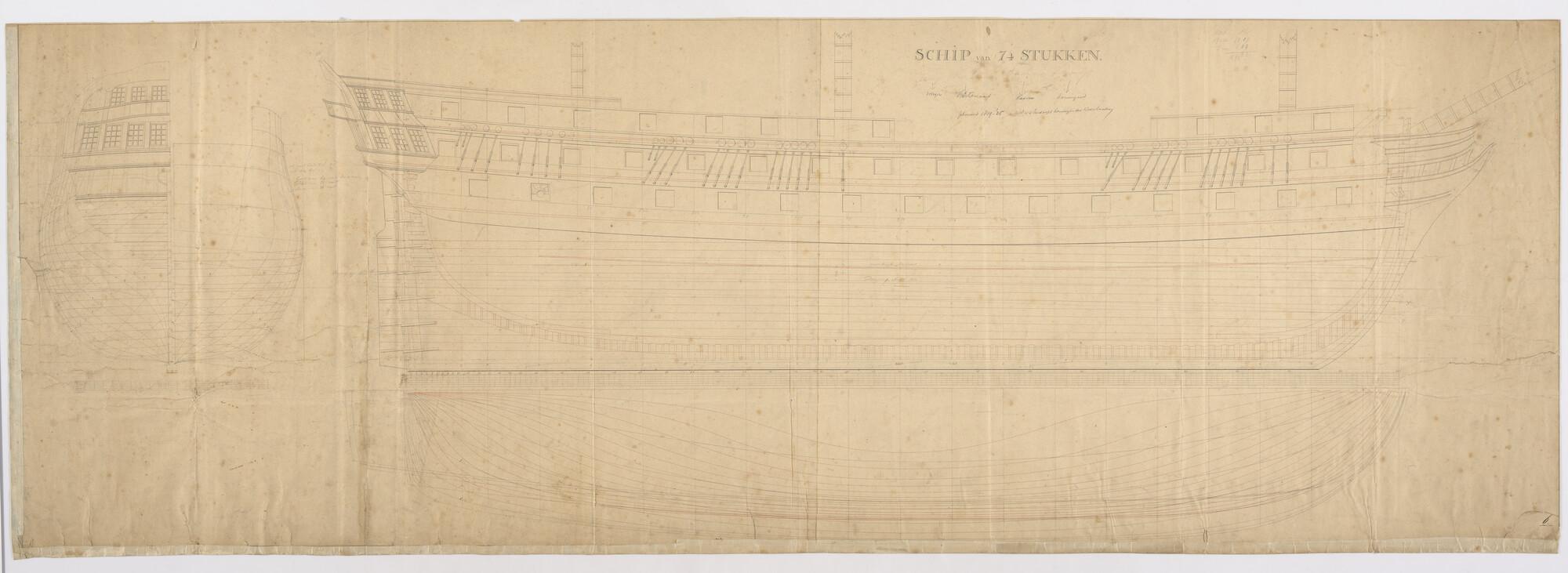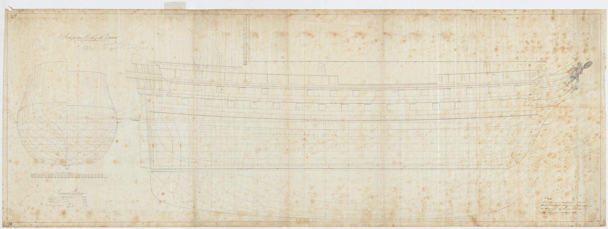 Lijnenplan van het van het linieschip 'Zeeuw' van 84...