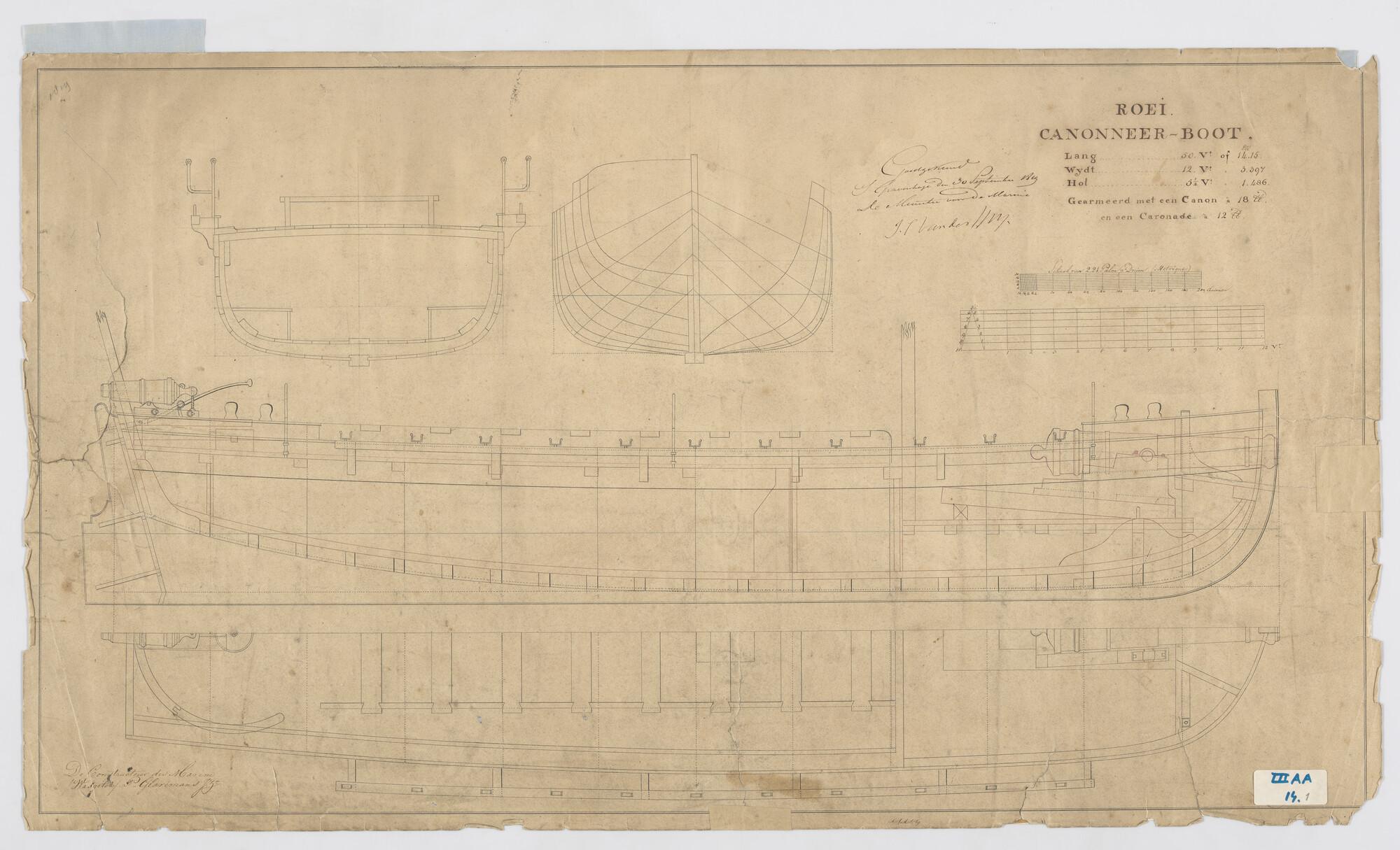 Algemeen plan van een roeikanonneerboot