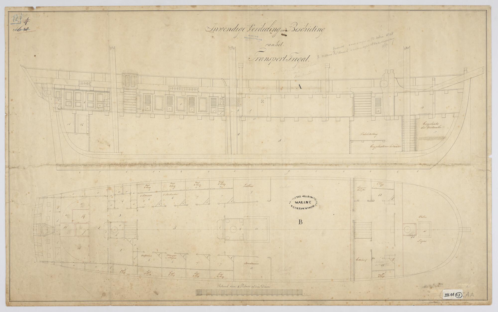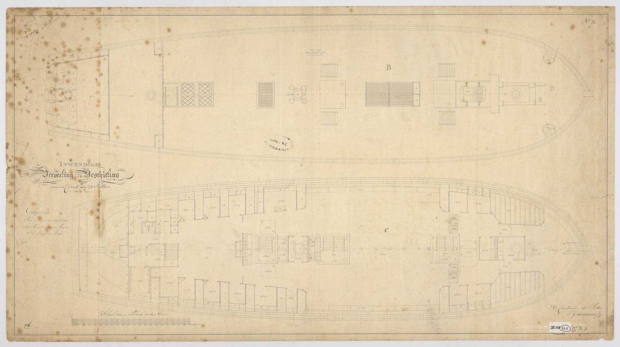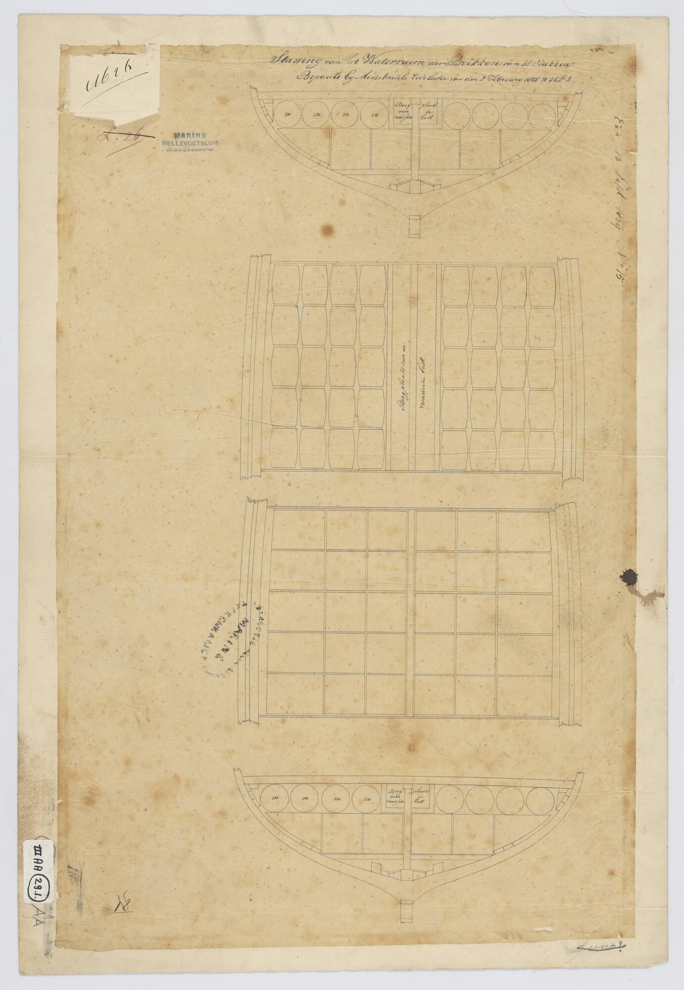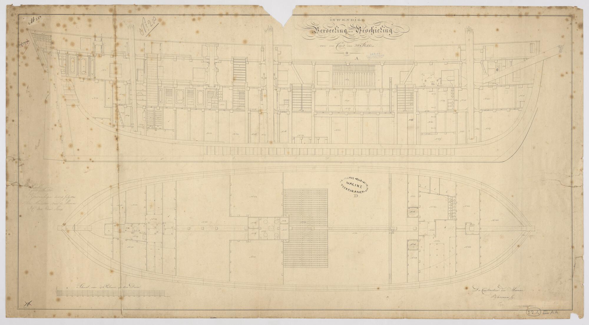 Indelingsplan van het wachtschip ex-linieschip Korte...