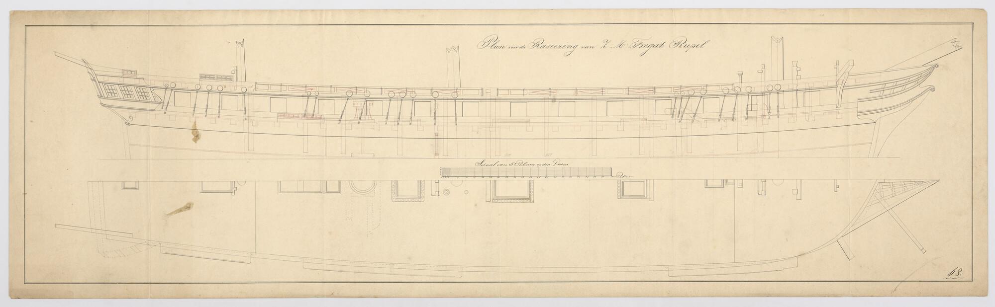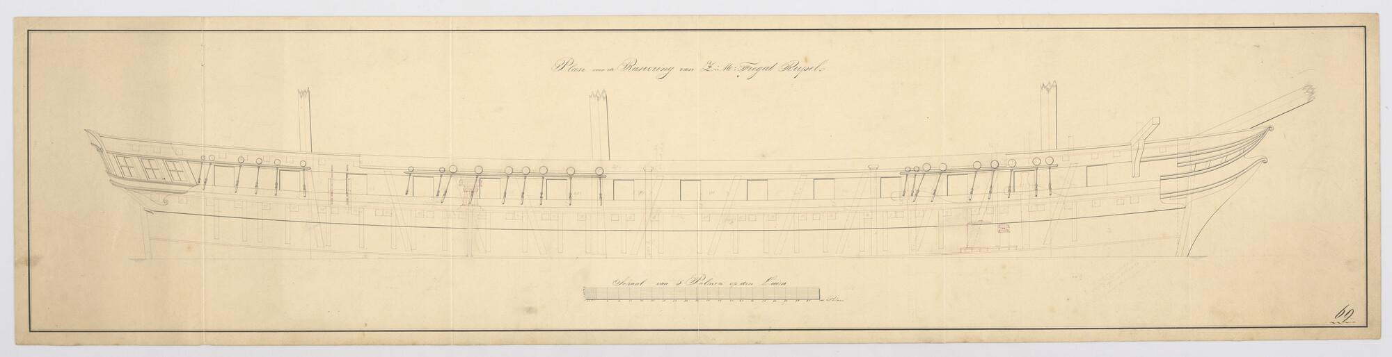 Tuigplan van een fregat van 44 stukken