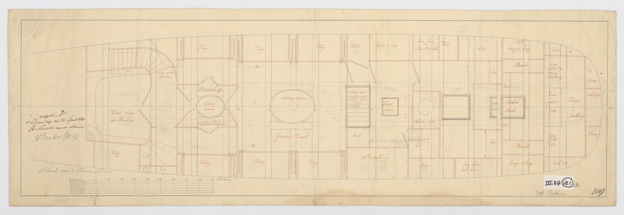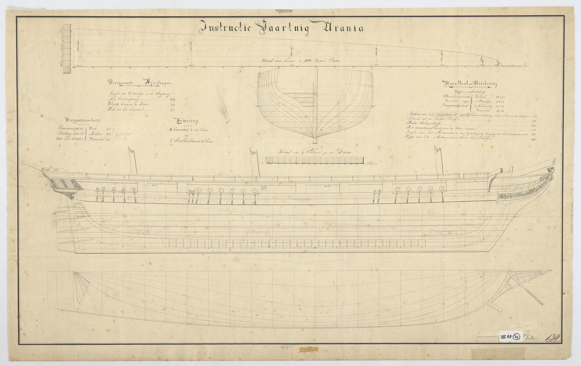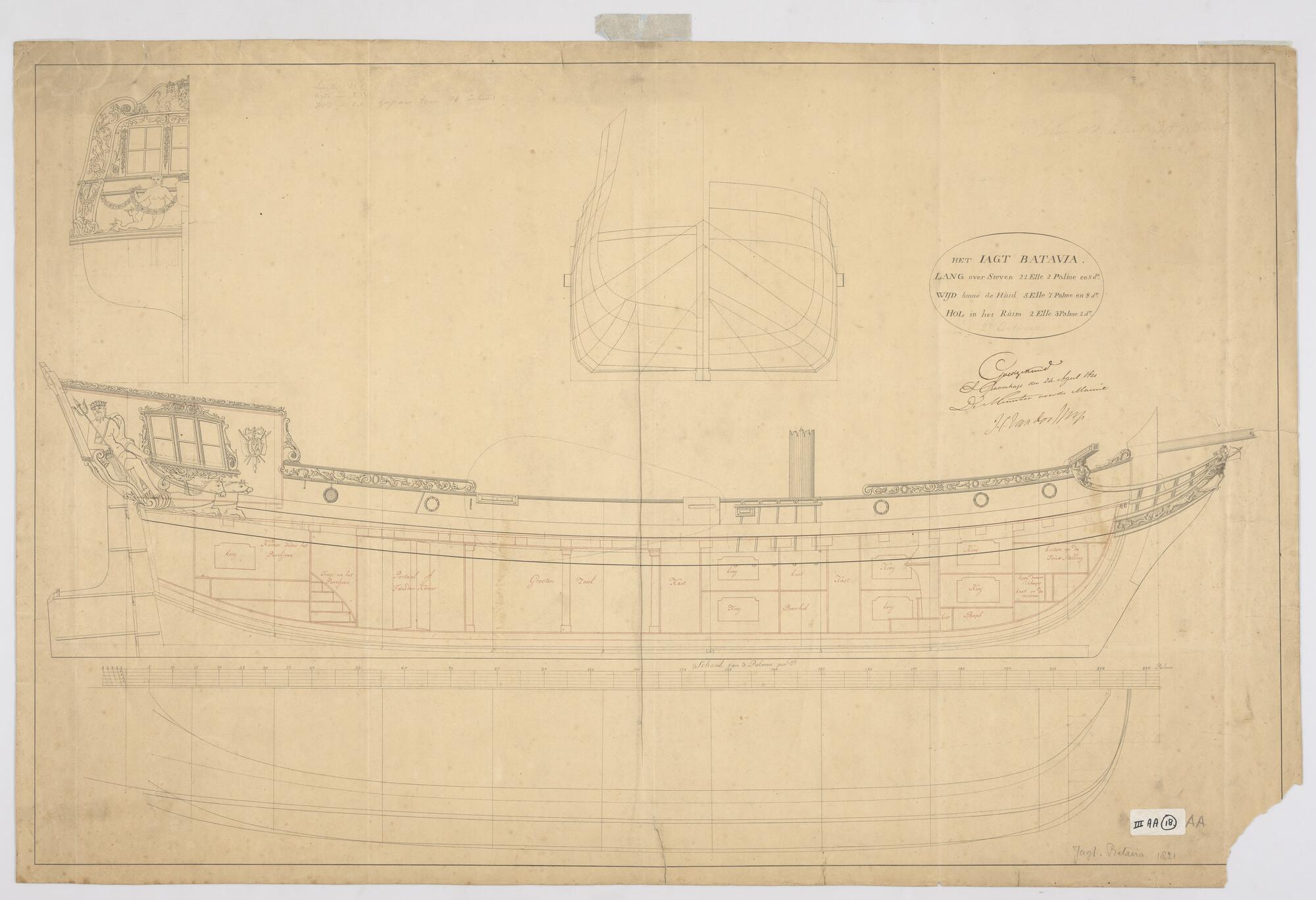 Algemeen- en lijnenplan van het jacht 'Batavia'