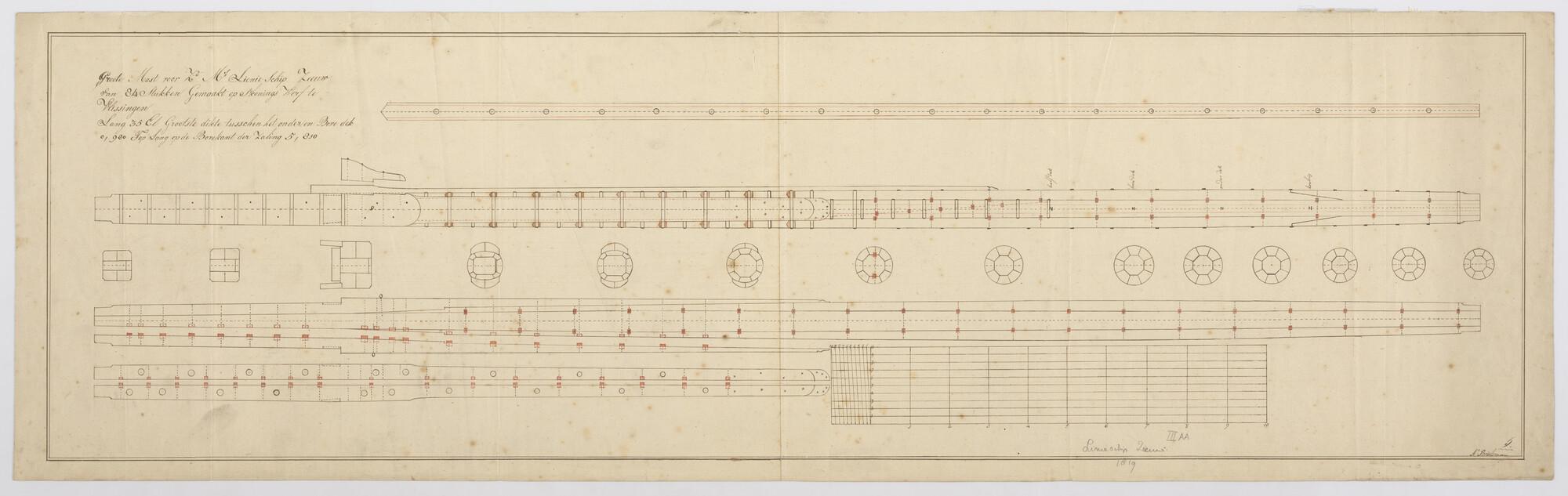 Constructieplan van de grote mast van het linieschip...