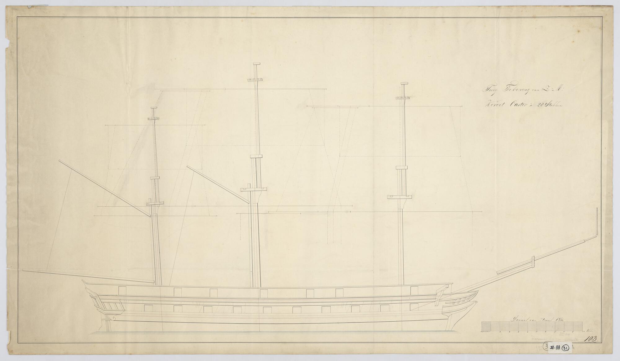 Tuigplan van het korvet Zr.Ms. 'Castor'