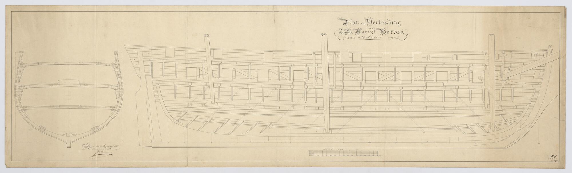 Constructieplan van het korvet Zr.Ms. 'Boreas' van 2...