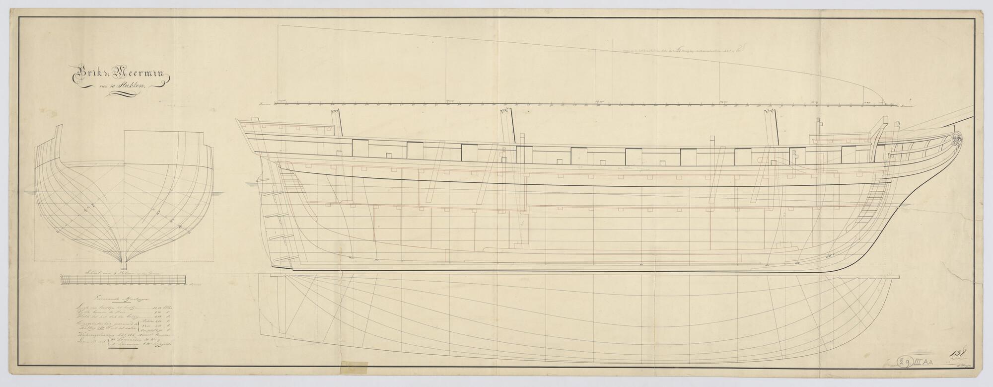 Lijnenplan van de brik Zr.Ms. 'Meermin' van 18 stukken