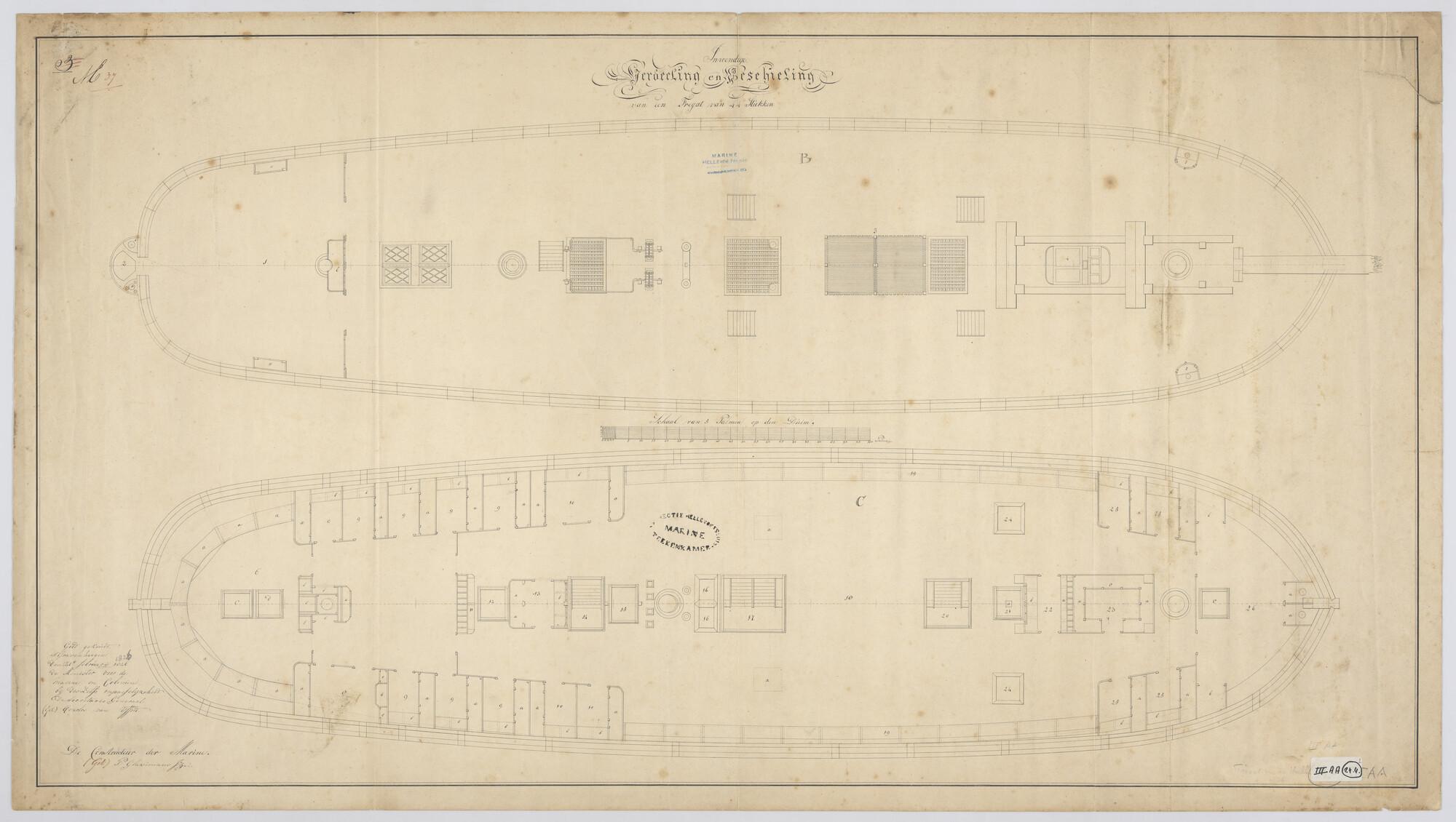 Indelingsplan van het fregat Zr.Ms. Algiers van 44 s...