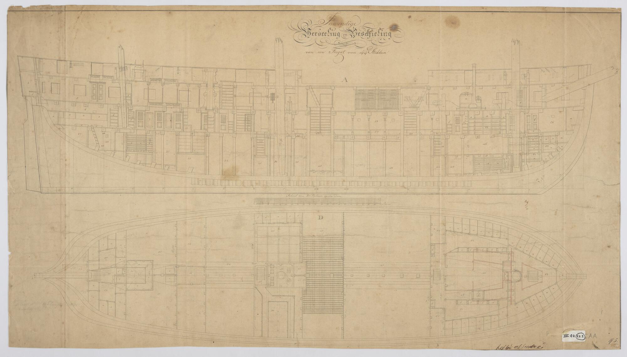 Indelingsplan van een fregat van 44 stukken