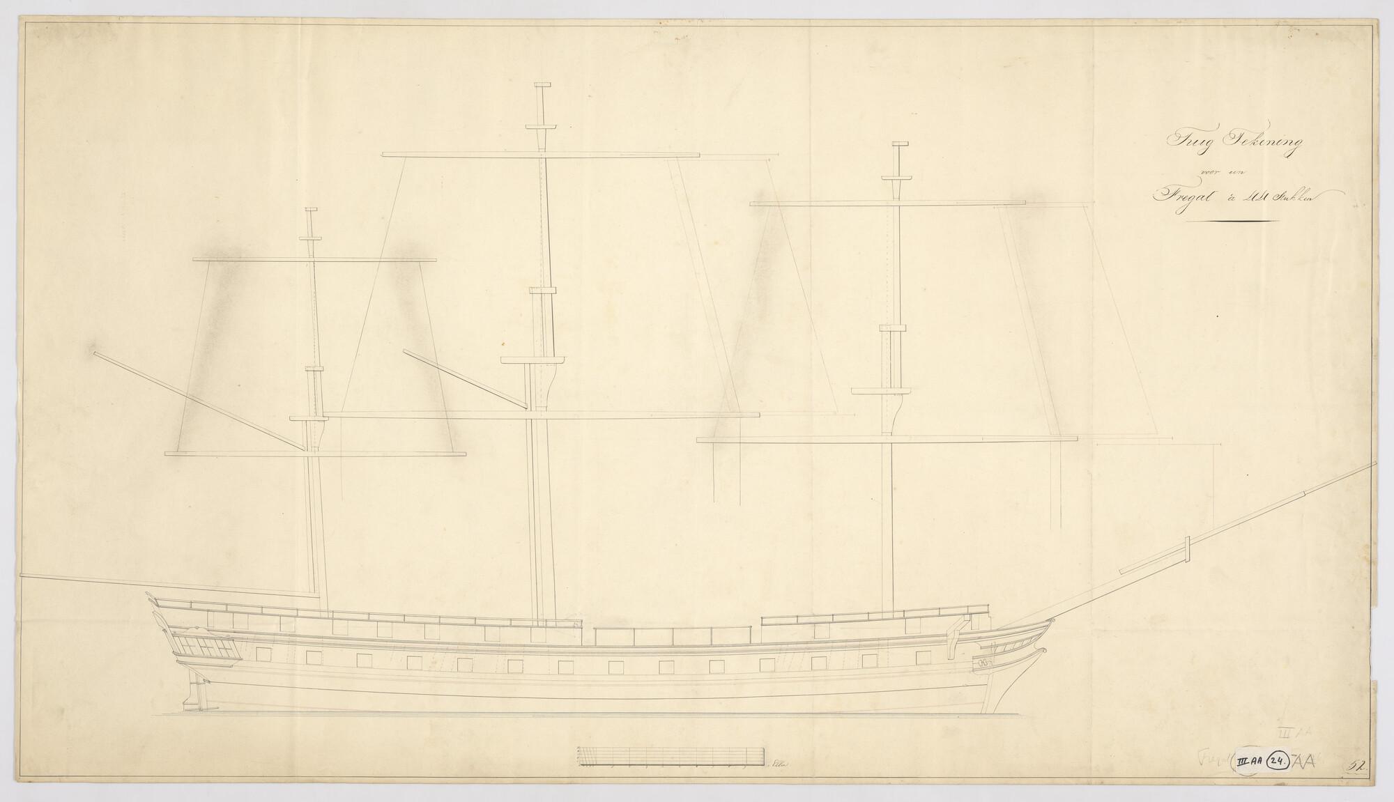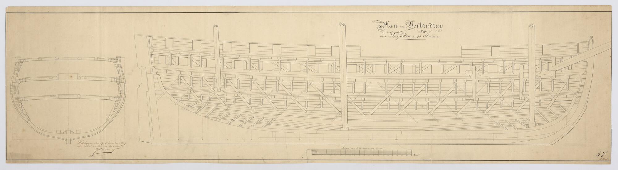 Constructieplan van een fregat van 44 stukken