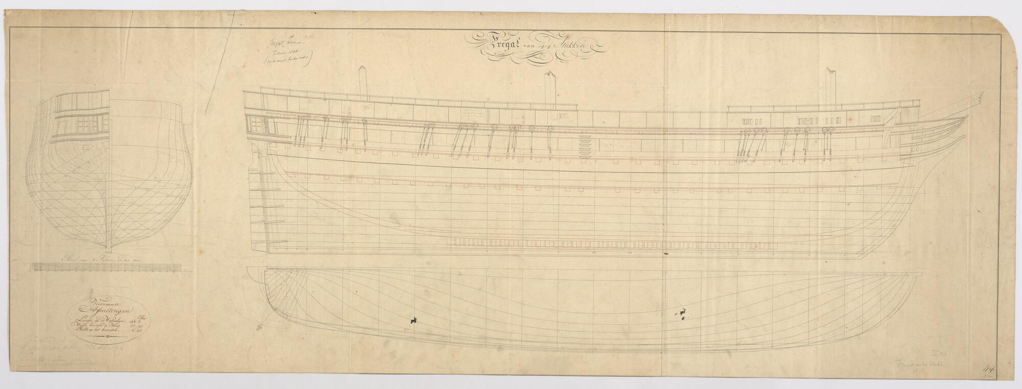 Lijnenplan van een fregat van 44 stukken