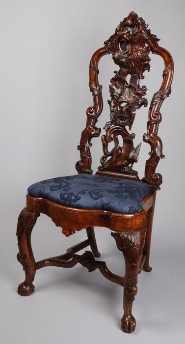 Rococo stoel met hond en zeemonster in de rugleuning