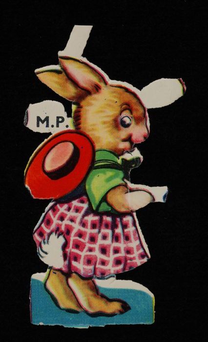 Poëzieplaatje 'Pasen', haasje met roze geruit rokje ...