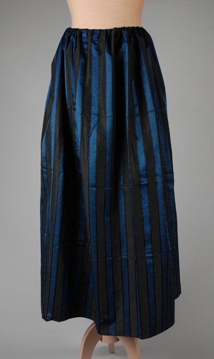 Schort of tablier van blauw-zwart gestreept zijde