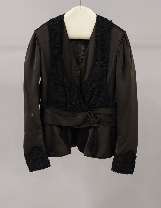 Lang zwart laken colbert met knoopssluiting, deel va...