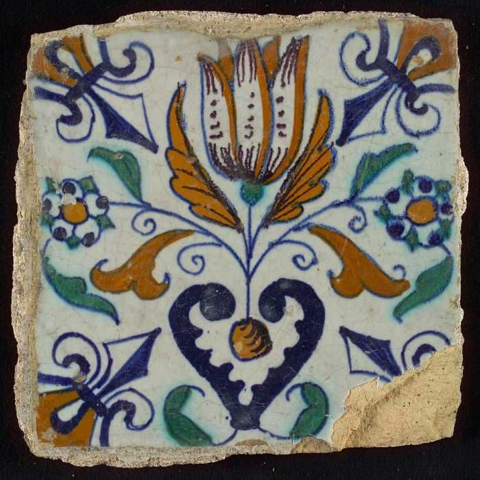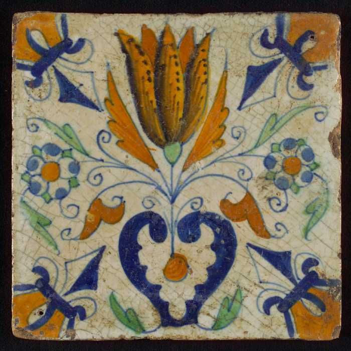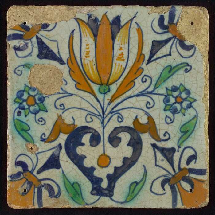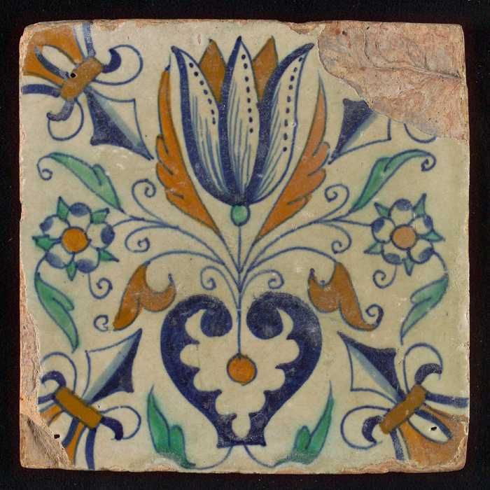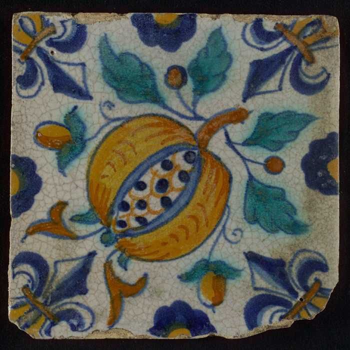 Ornamenttegel, granaatappel, halve rozet, hoekmotief...