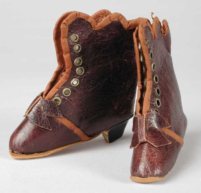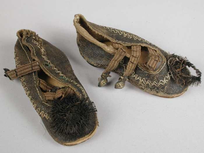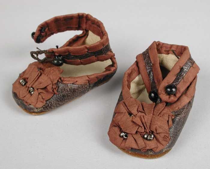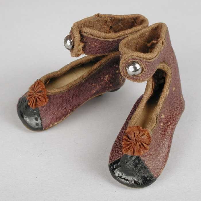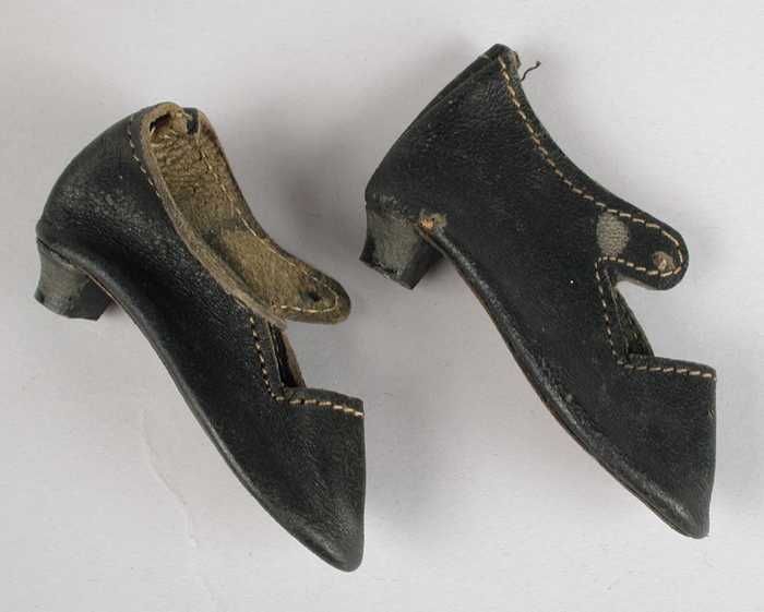 Paar miniatuur platte schoenen van wit linnen (?) me...
