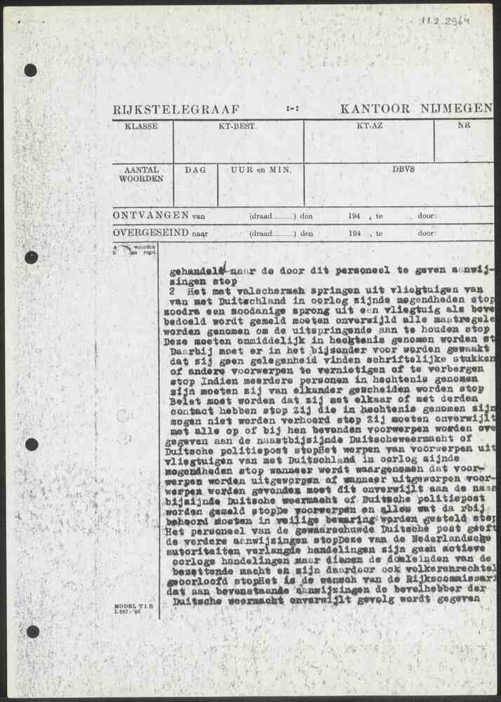 Rijkstelegram van KT-AZ 's Gravenhage aan kantoor Ni...