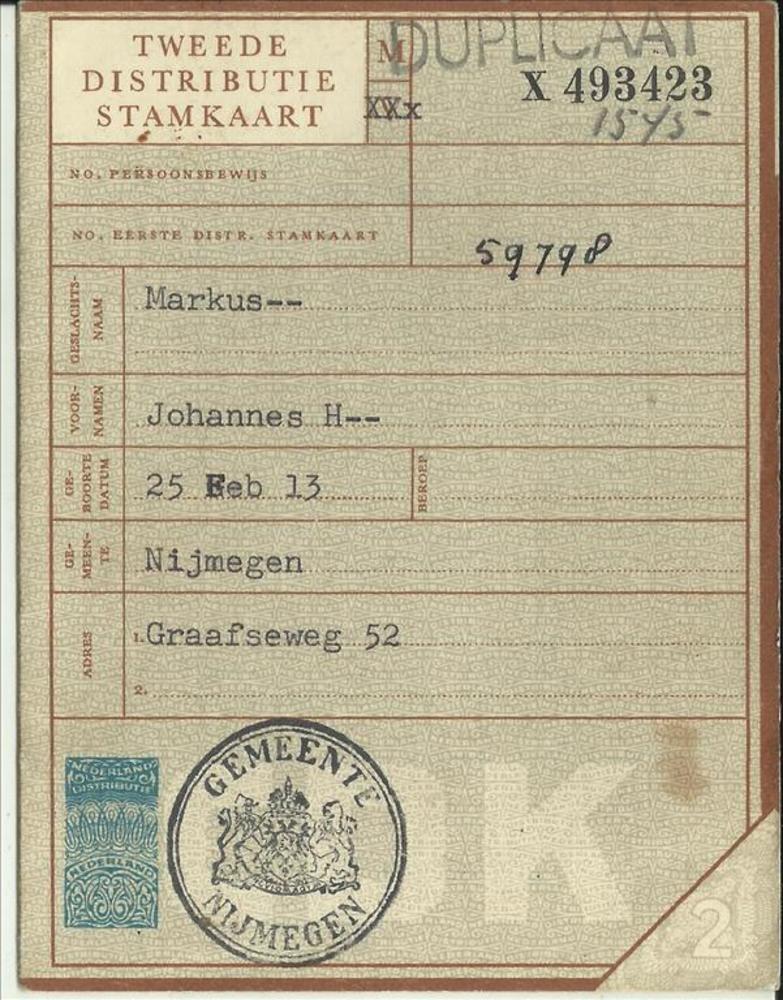 Tweede Distributiestamkaart op naam van Ypey - Erik.