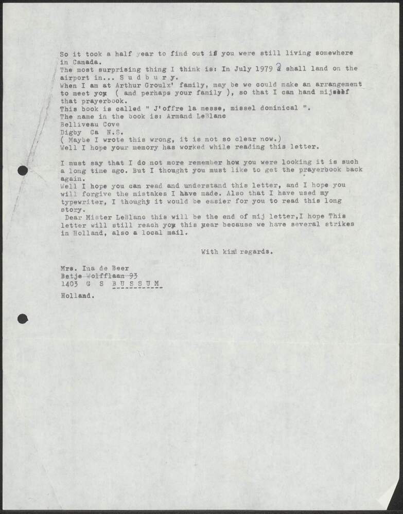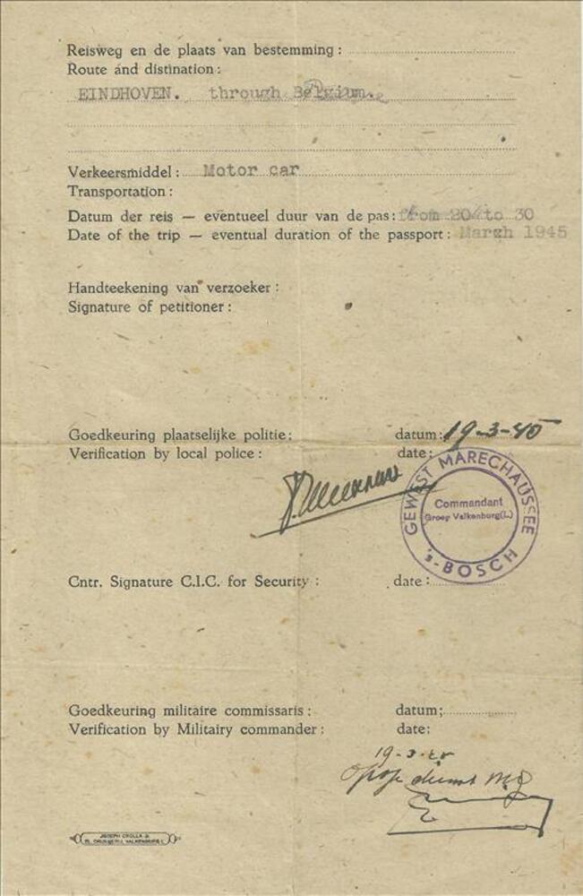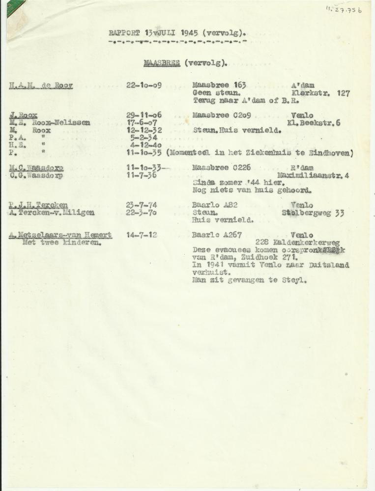 Rapport 13 juli 1945 bezoek Maasbree door J. Schellinx