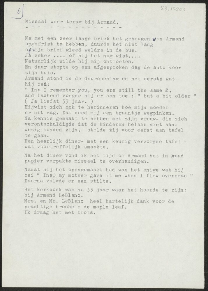 Tekst "Missaal weer terug bij Armand" met verhaal ov...