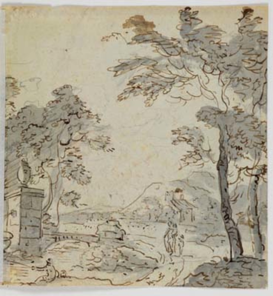 Landschap met vissers en wandelaars