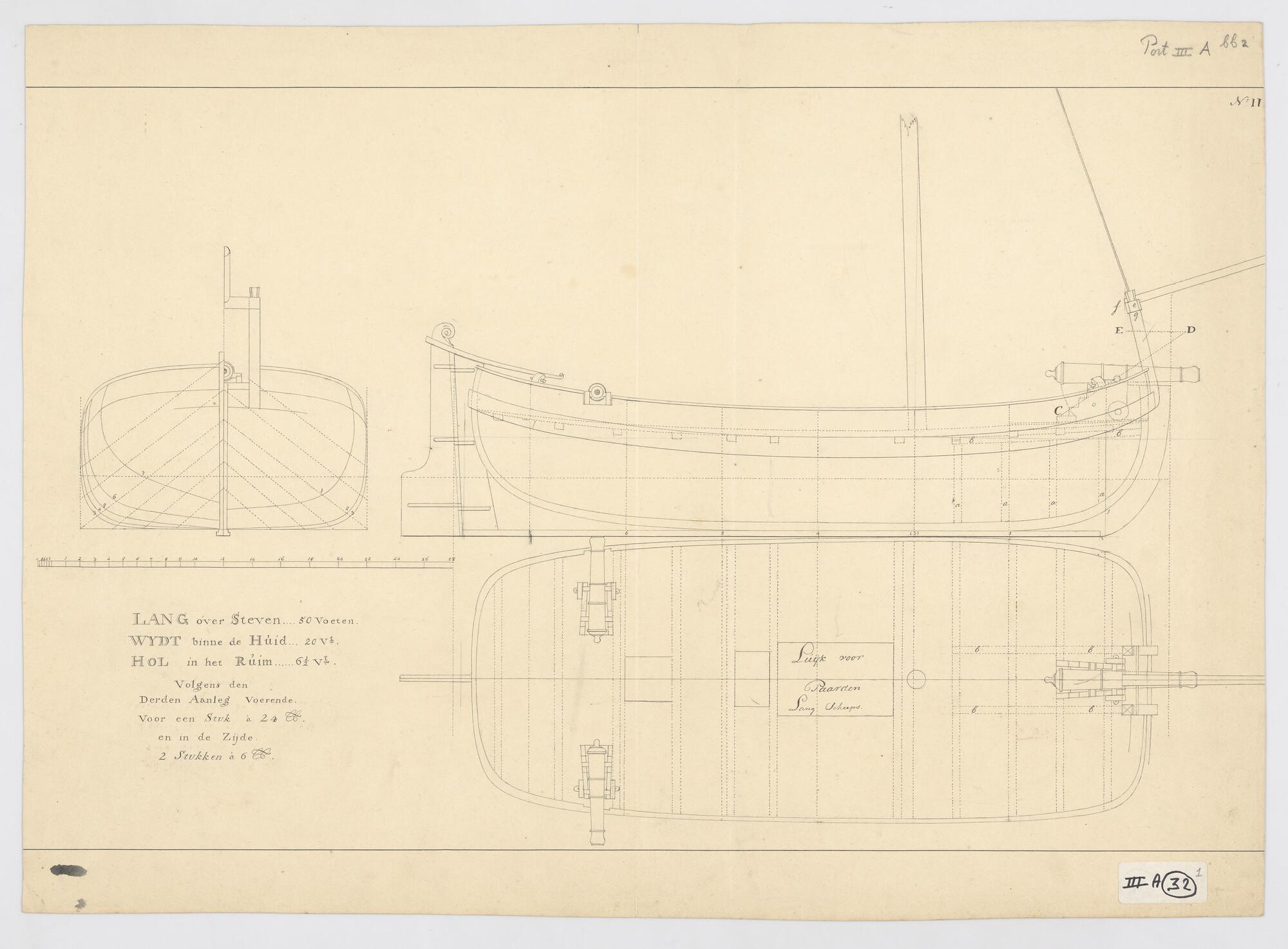 Lijnenplan van een nieuw groot model gaffelkanonneer...