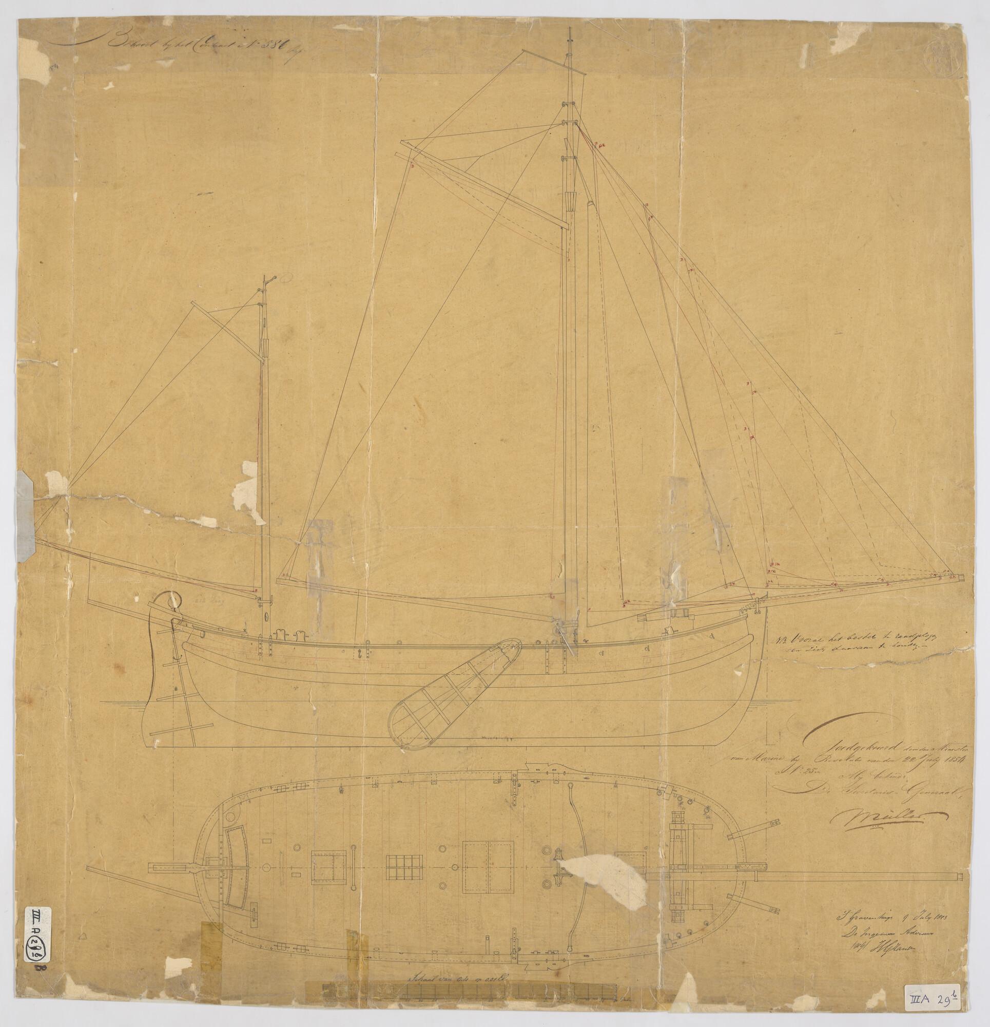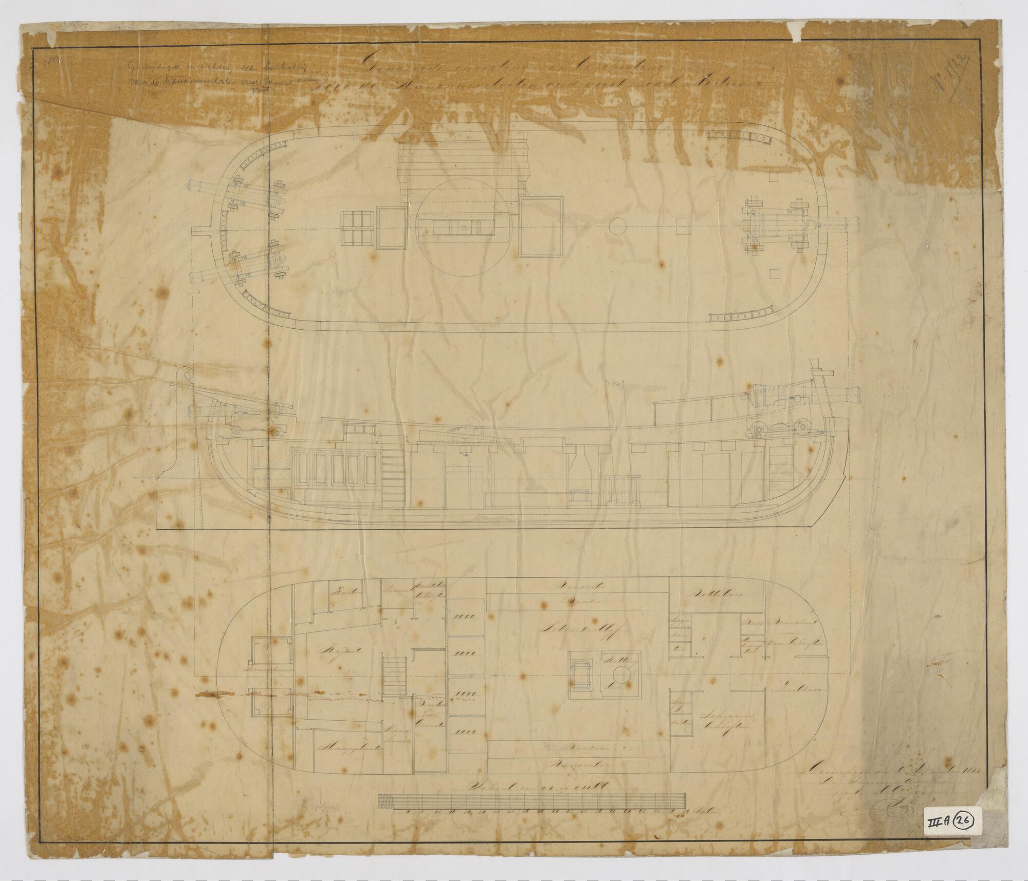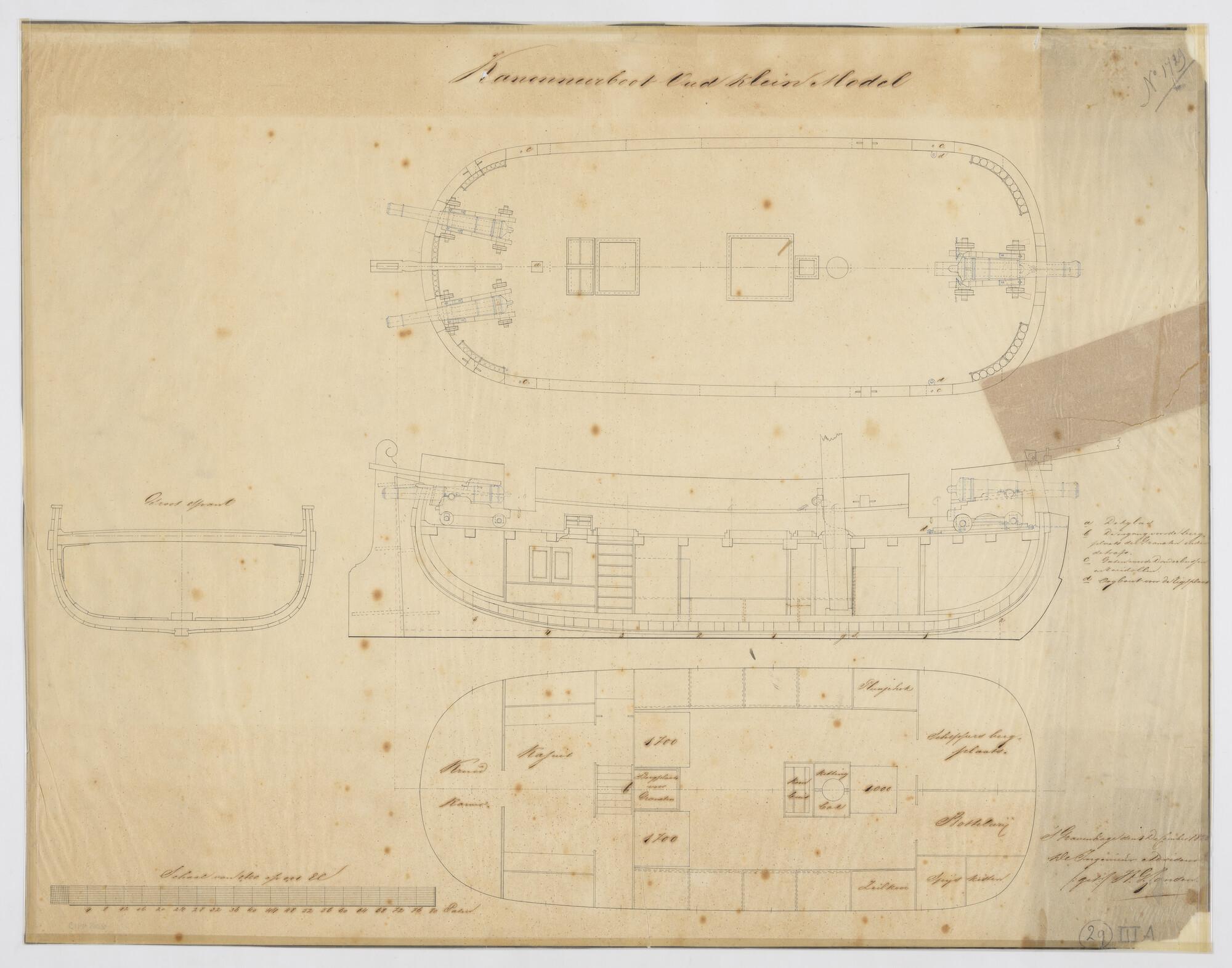 Lijnenplan van een kanonneerboot, 1853