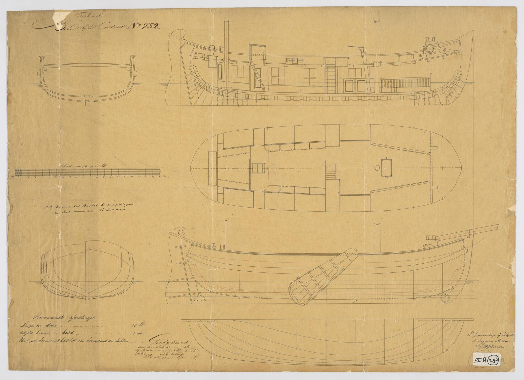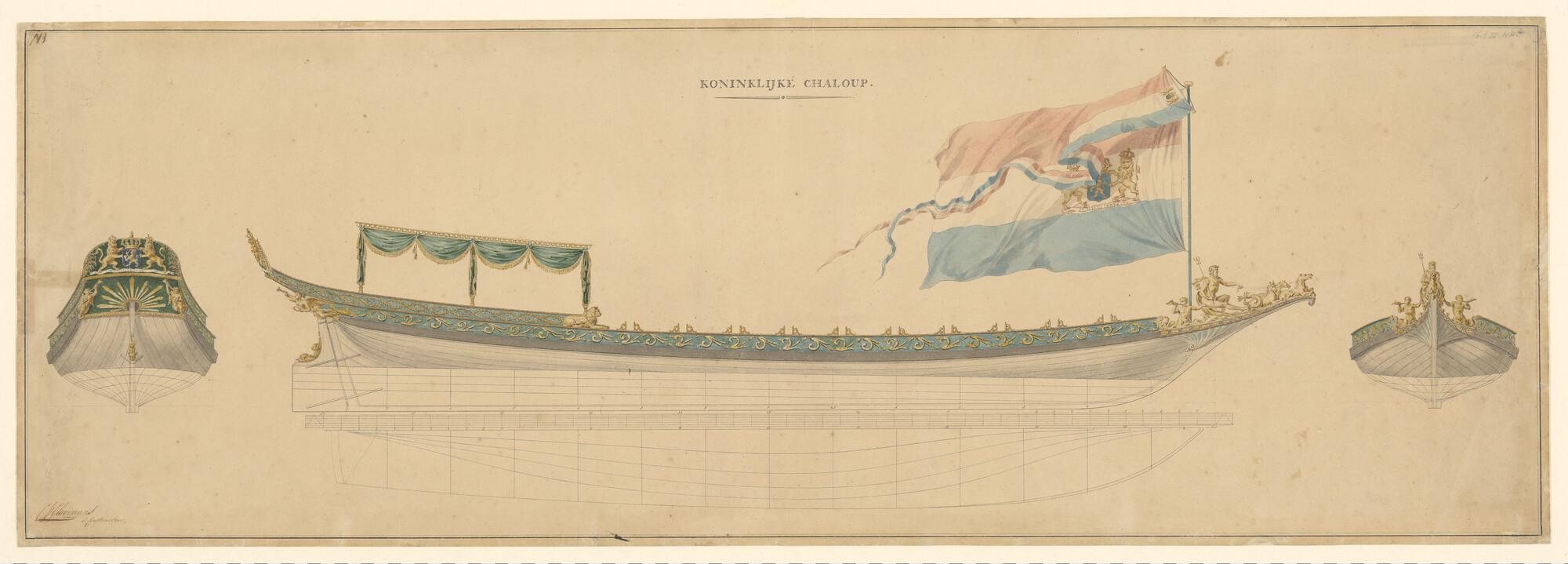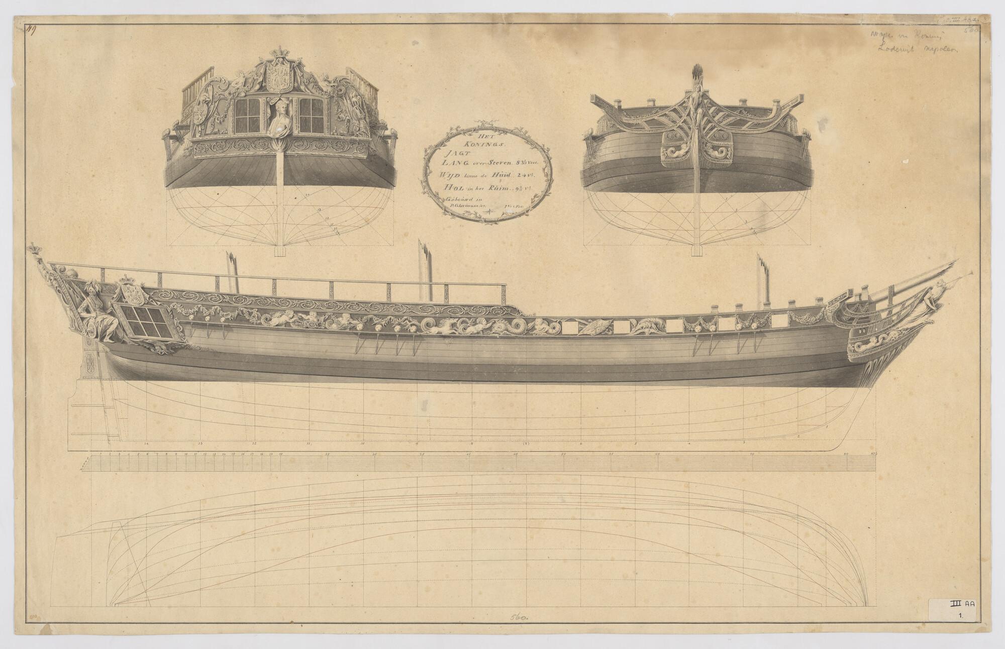 Algemeen- en lijnenplan van het koningsjacht voor Lo...
