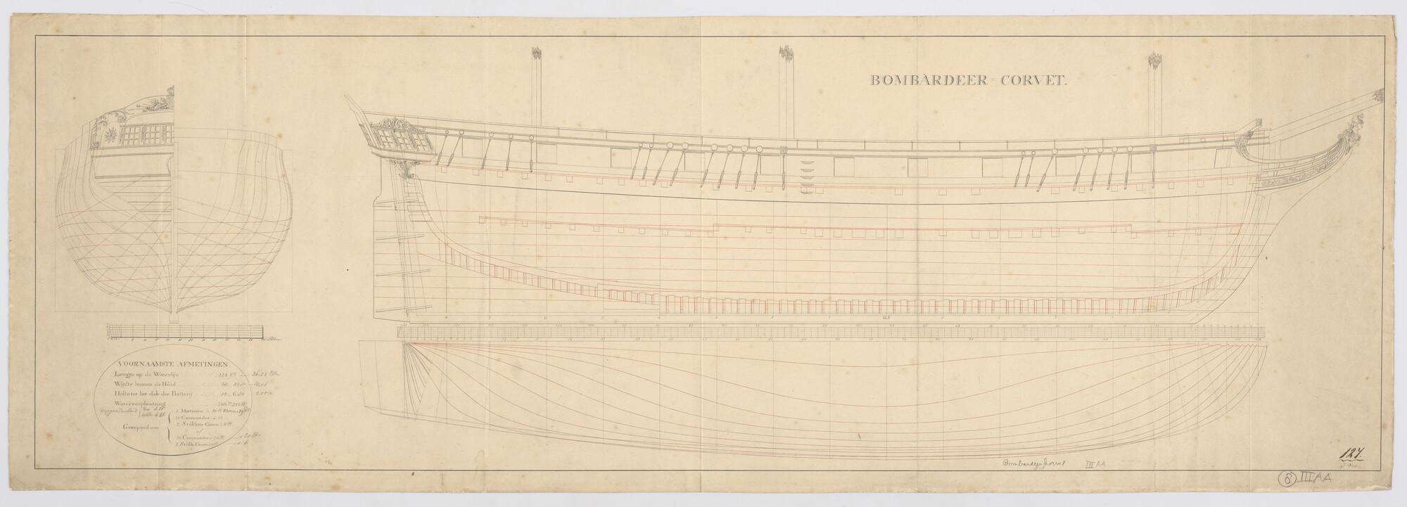 Lijnenplan van een bombardeerkorvet