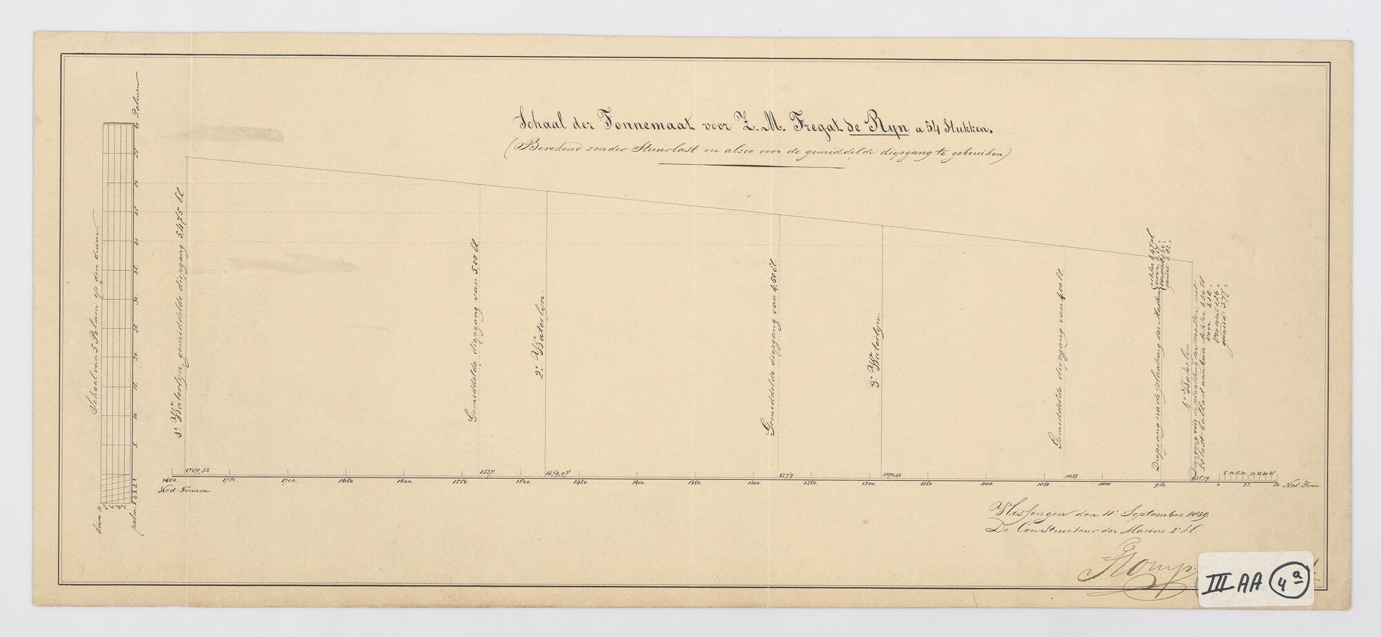 Schaal van tonnemaat voor het fregat 'Rijn'