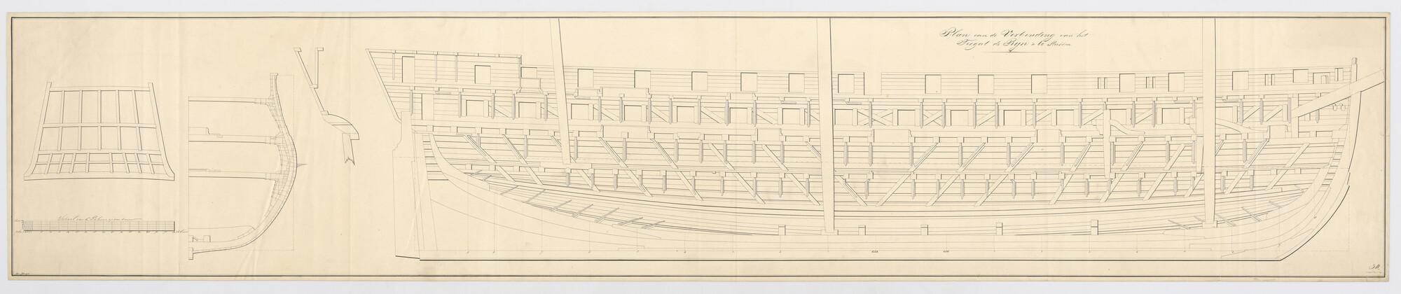 Lijnenplan van een schip van 80 stukken