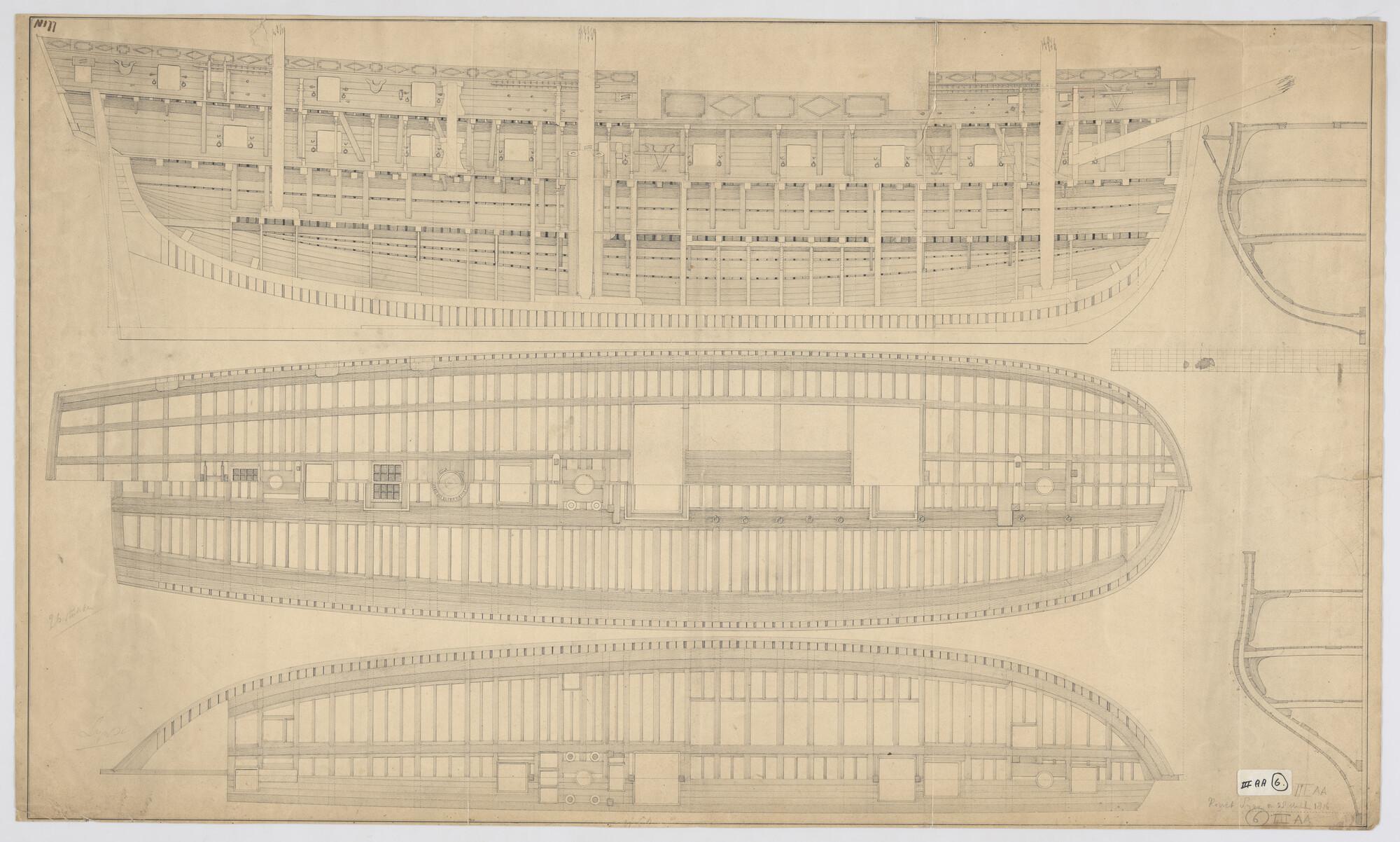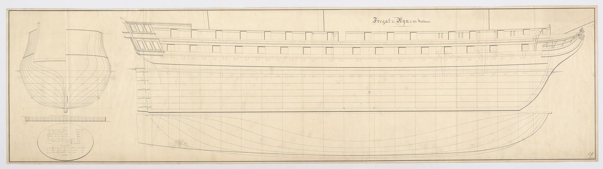 Constructieplan na de verlenging van het fregat 'Rij...