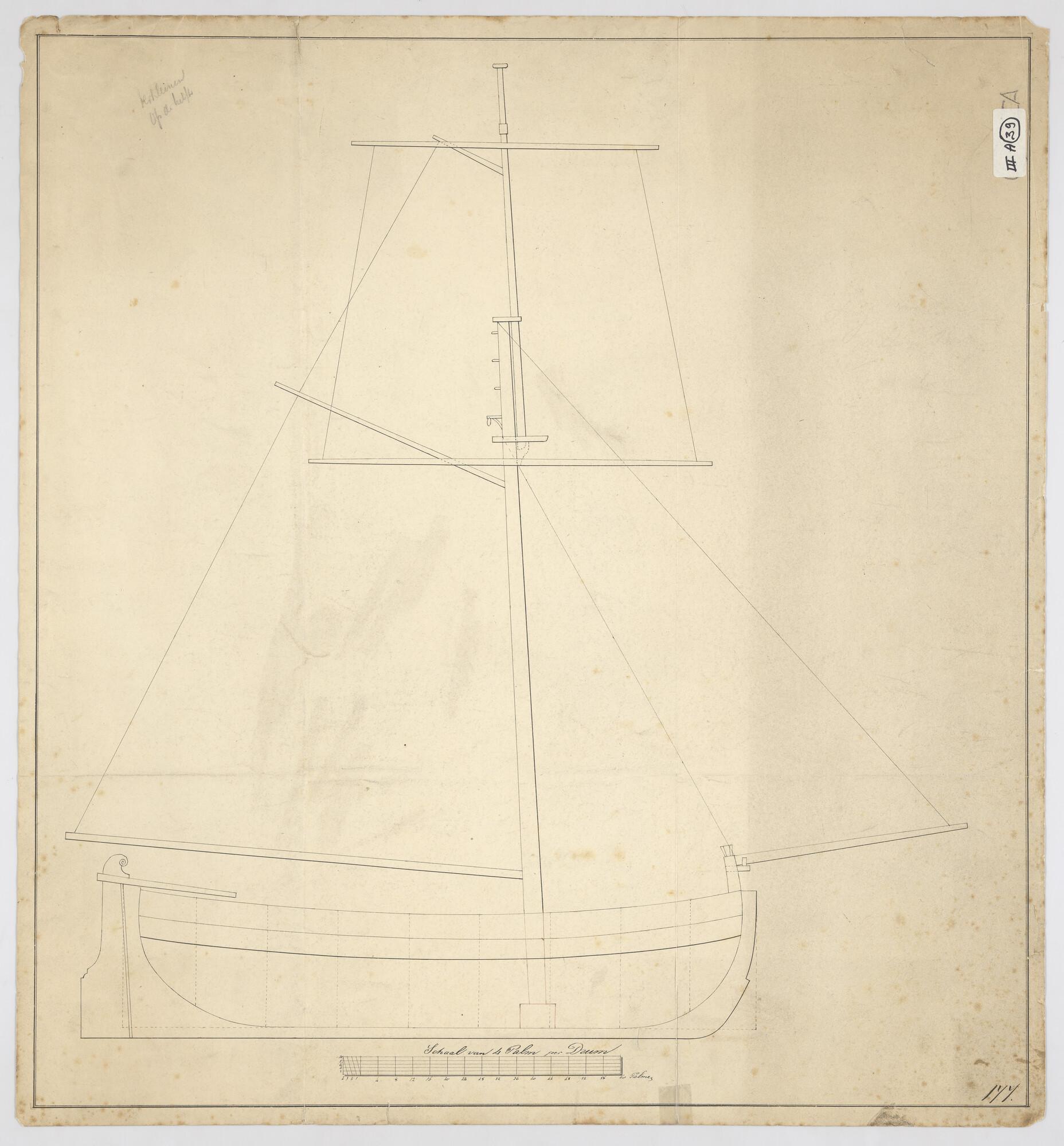 Algemeen plan van een klein model gaffelkanonneerboot