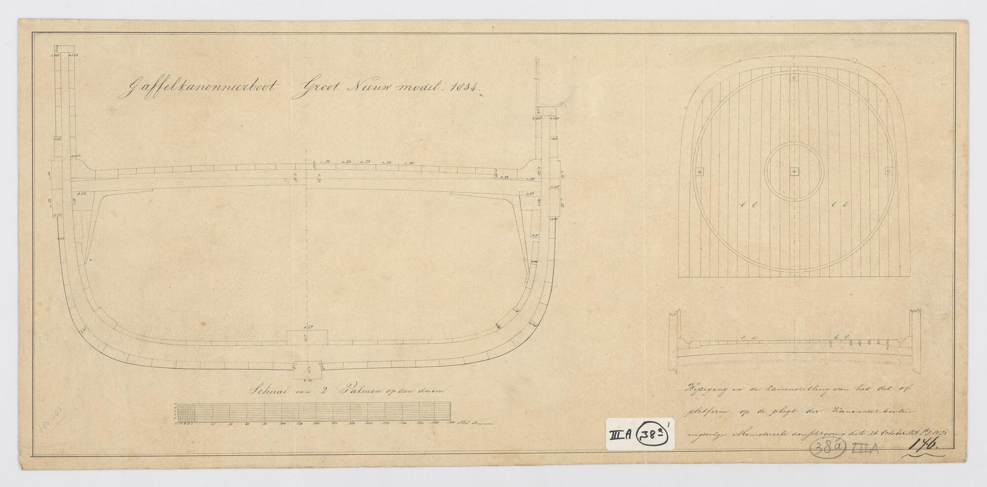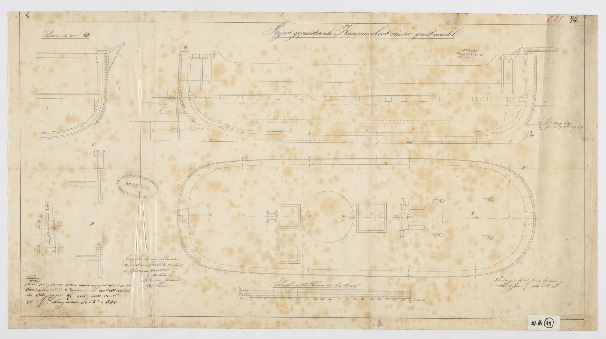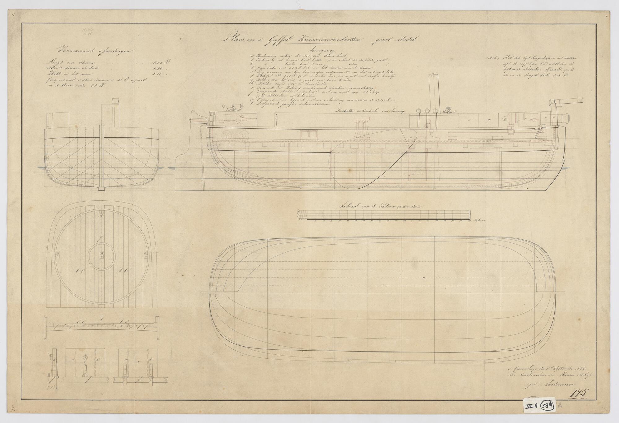 Algemeen plan van een groot type gaffelkanonneerboot...