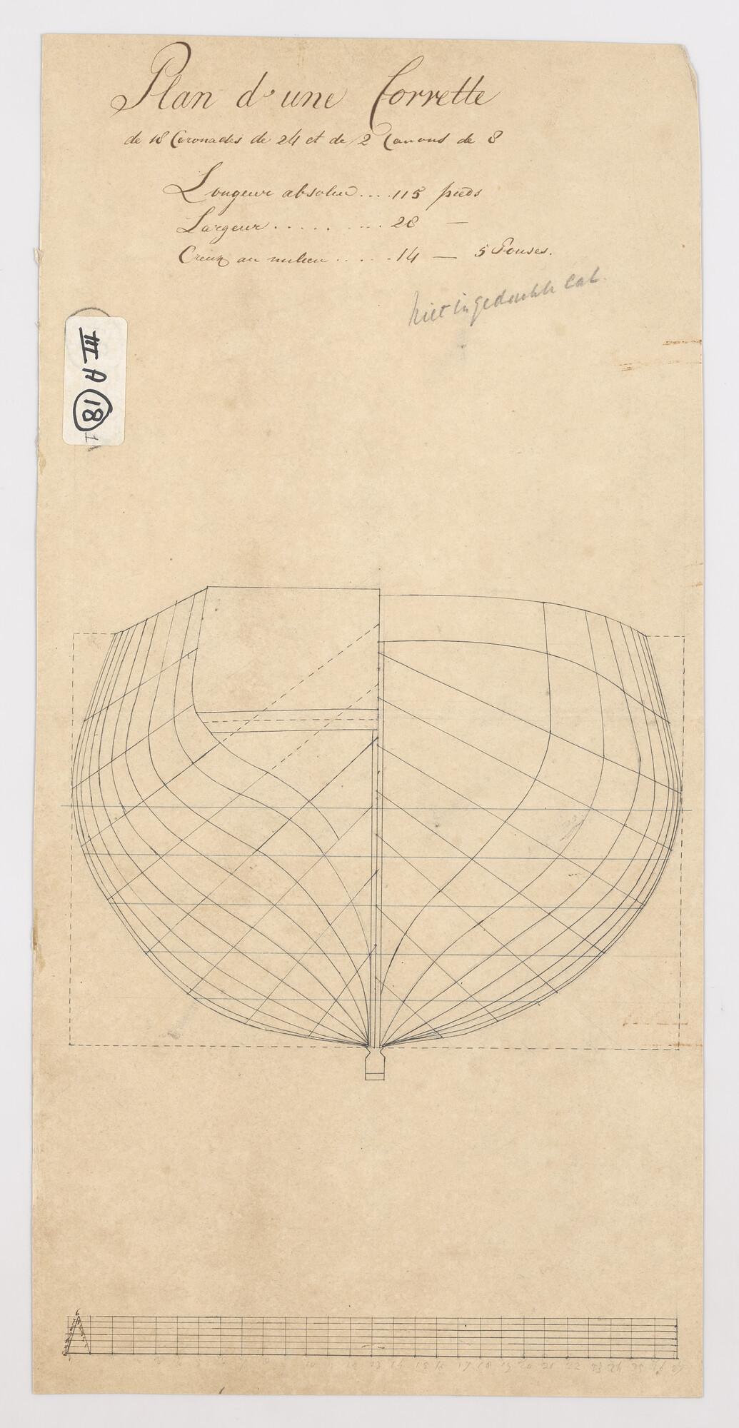 Lijnenplan van een Frans korvet van 20 stukken