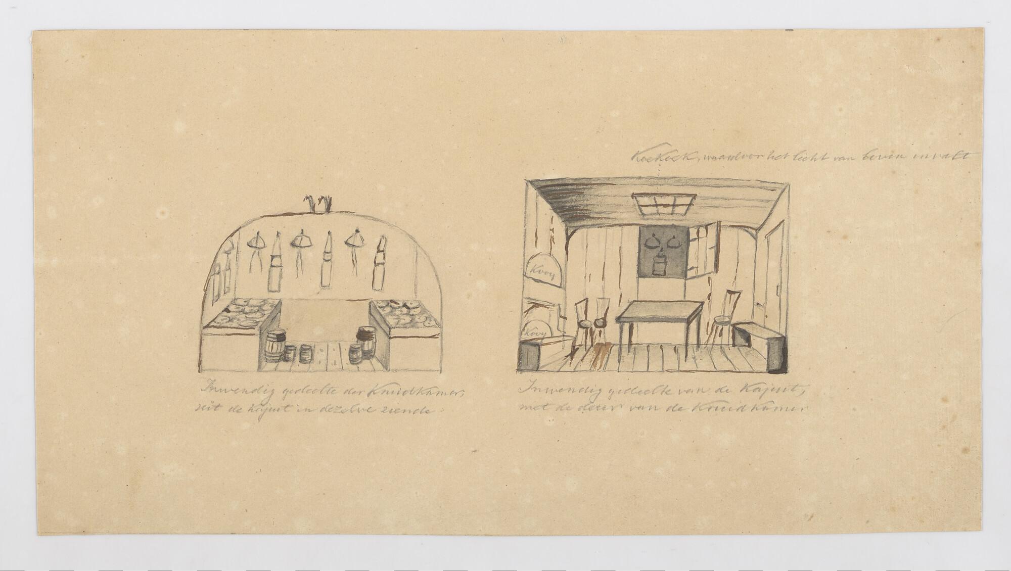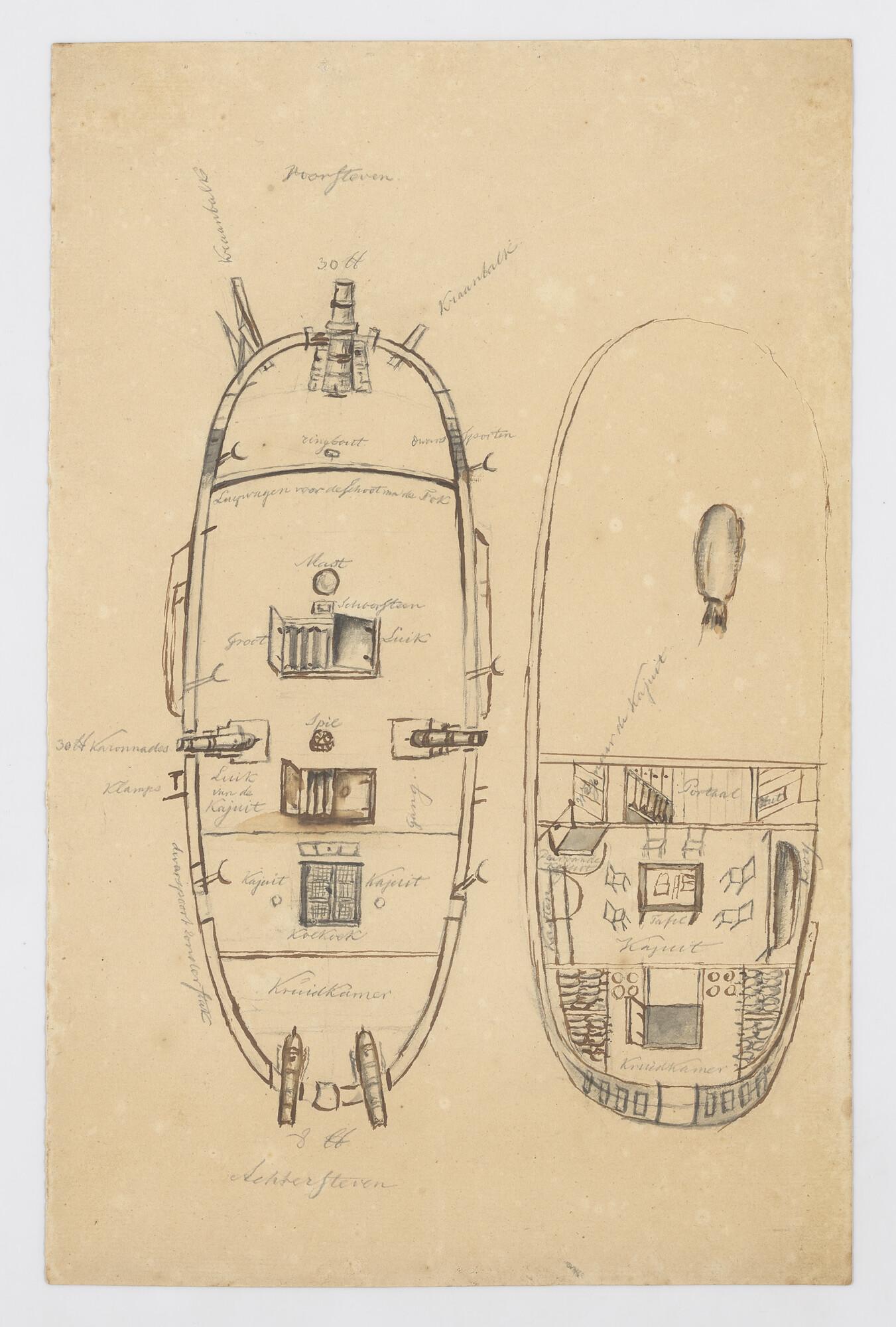Schets van de verblijven van een kanonneerboot