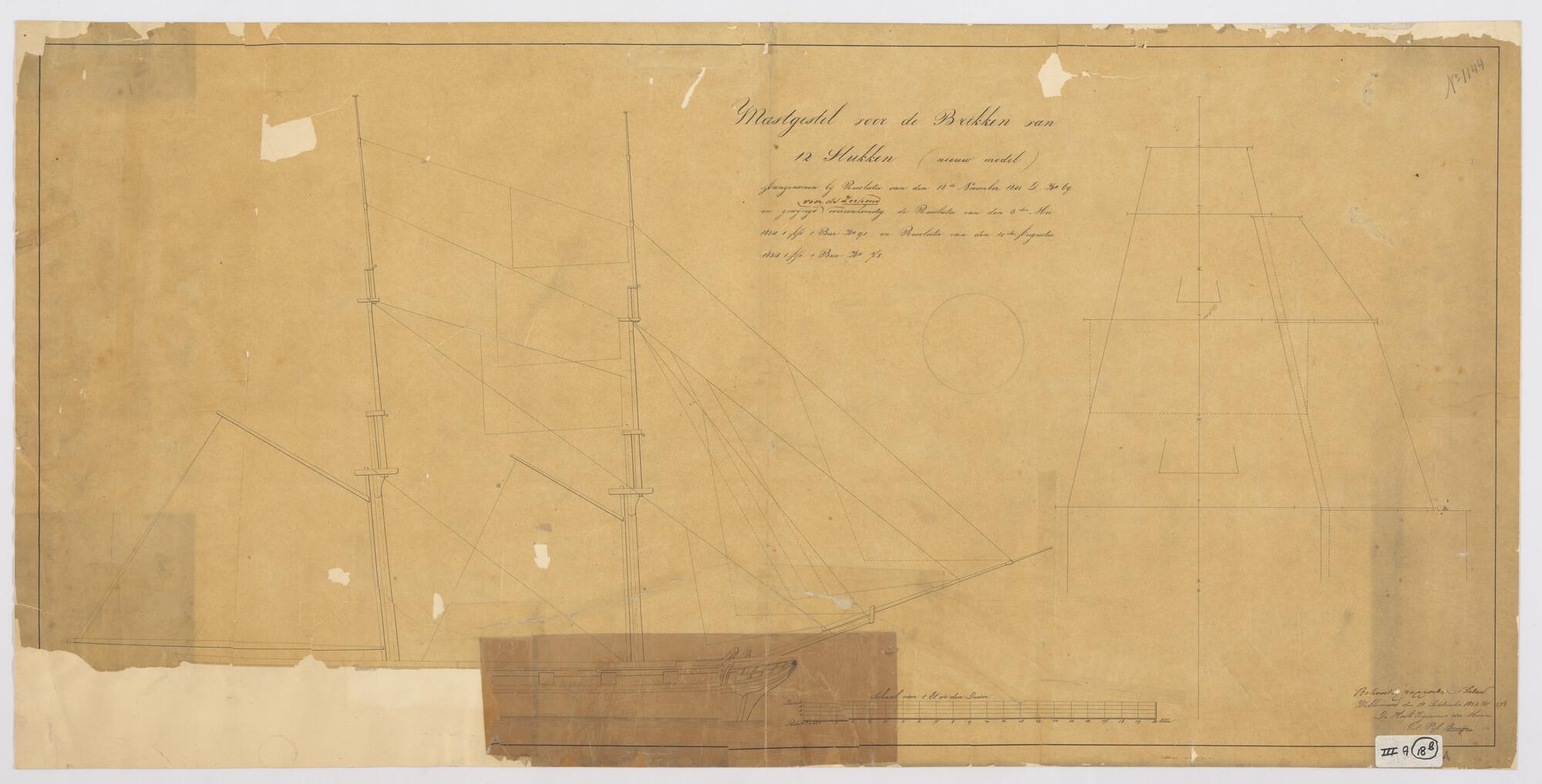 Tuigplan van een brik van 12 stukken