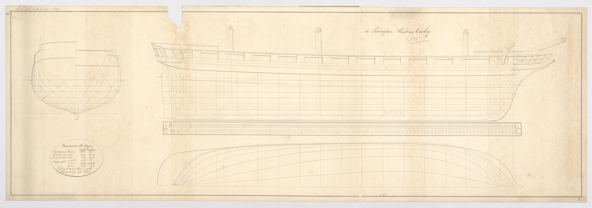 Lijnenplan van het korvet Lexington van 26 stukken