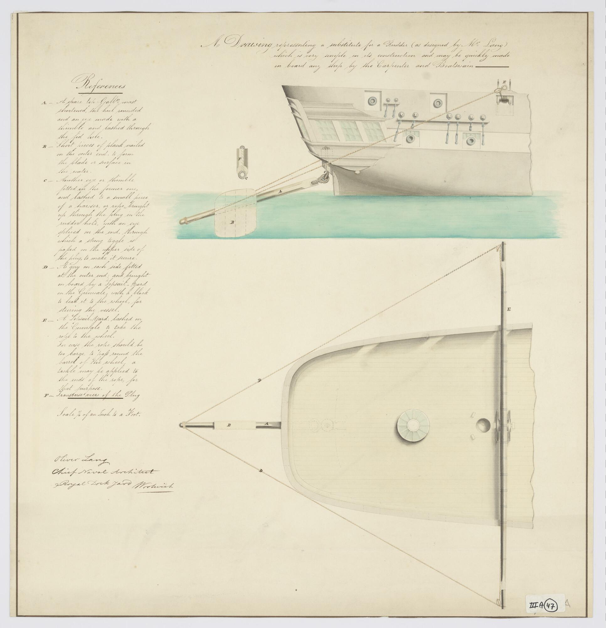 Zijaanzicht, en perspectief-doorsnede van een roeila...