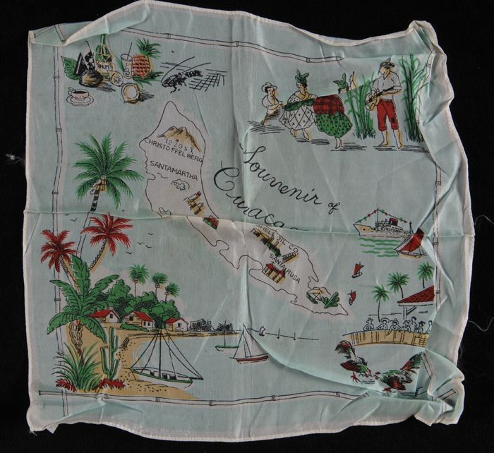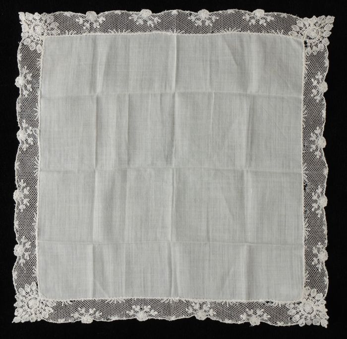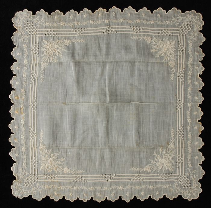 Vierkante zakdoek van wit batist met brede zoomrand ...