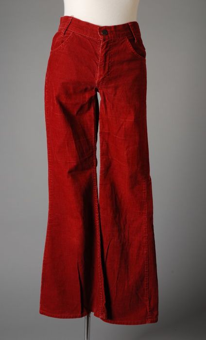 Rode ribfluwelen lange broek met wijduitlopende pijp...