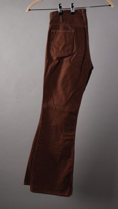 Lange broek van bruin katoen met wijduitlopende pijp...