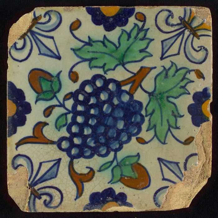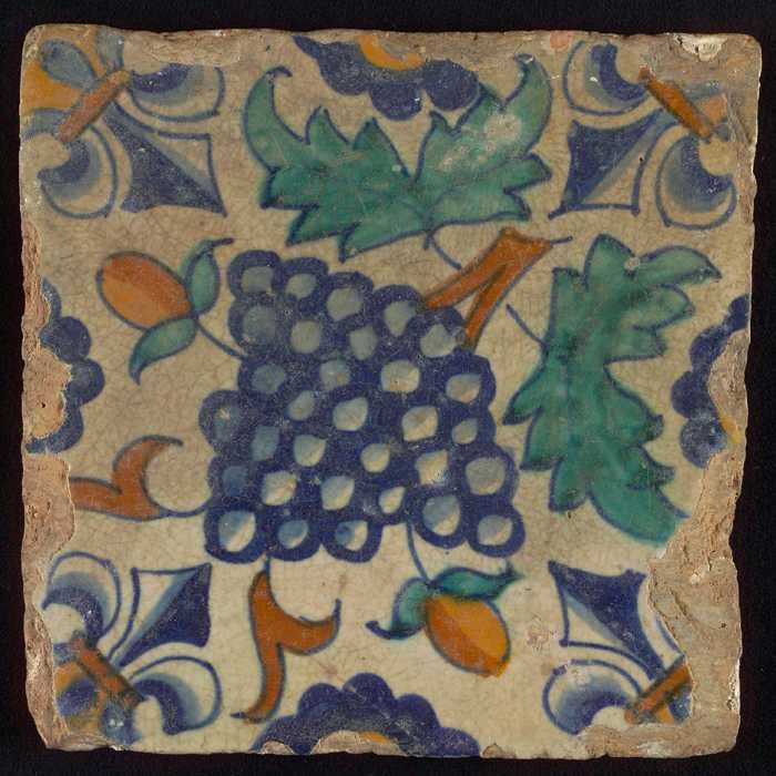 Ornamenttegel, blauwe trek, oranje, bruin en groen o...