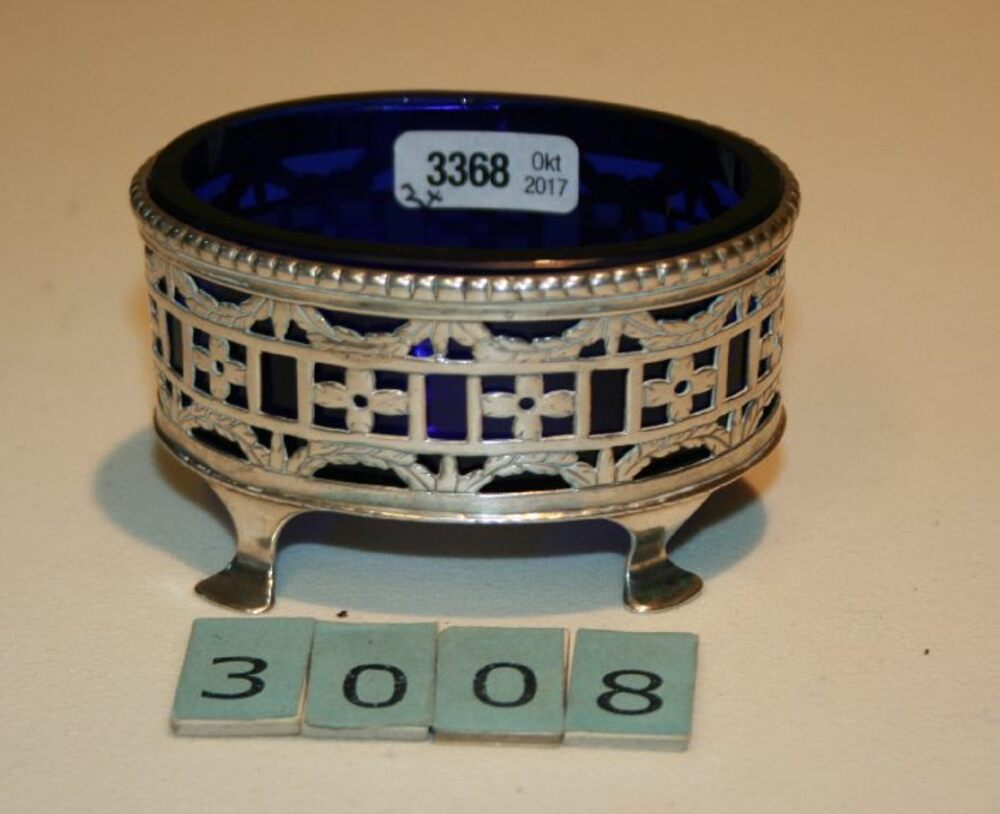 Zilveren zoutvat met blauw glazen bakje