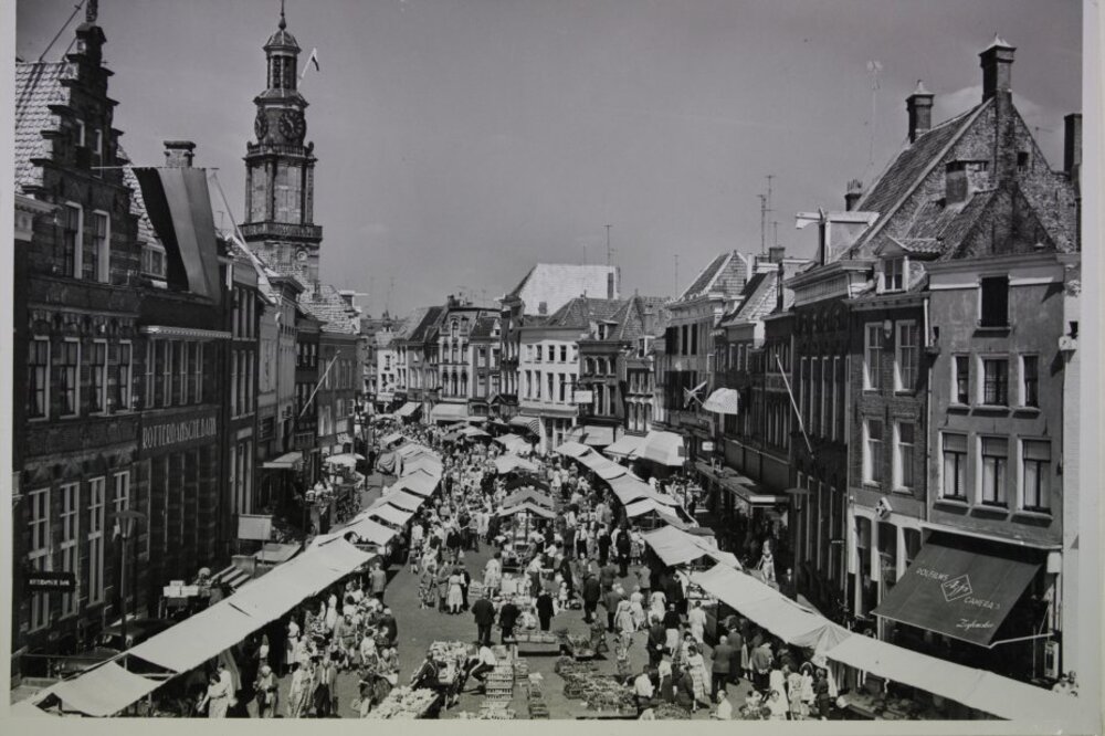 Houtmarkt op marktdag.