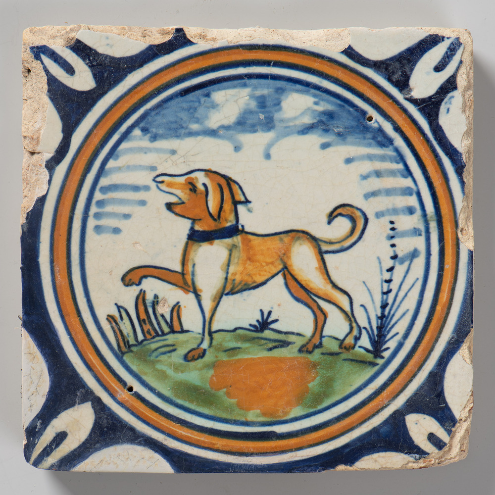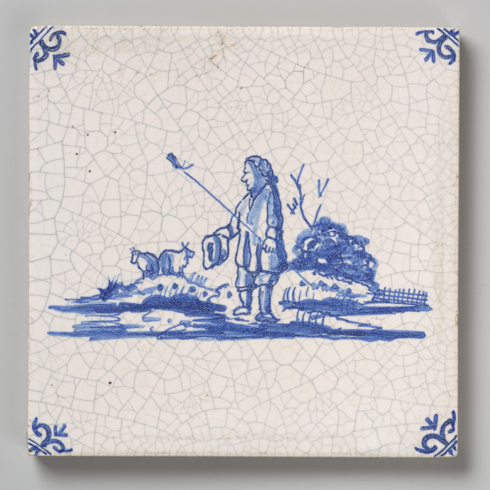 tegel van aardewerk met tinglazuur, voorstellende: t...