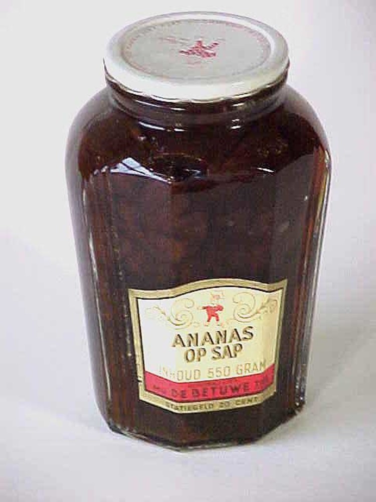 Pot van glas met metalen klikdeksel, inhoud ananas o...