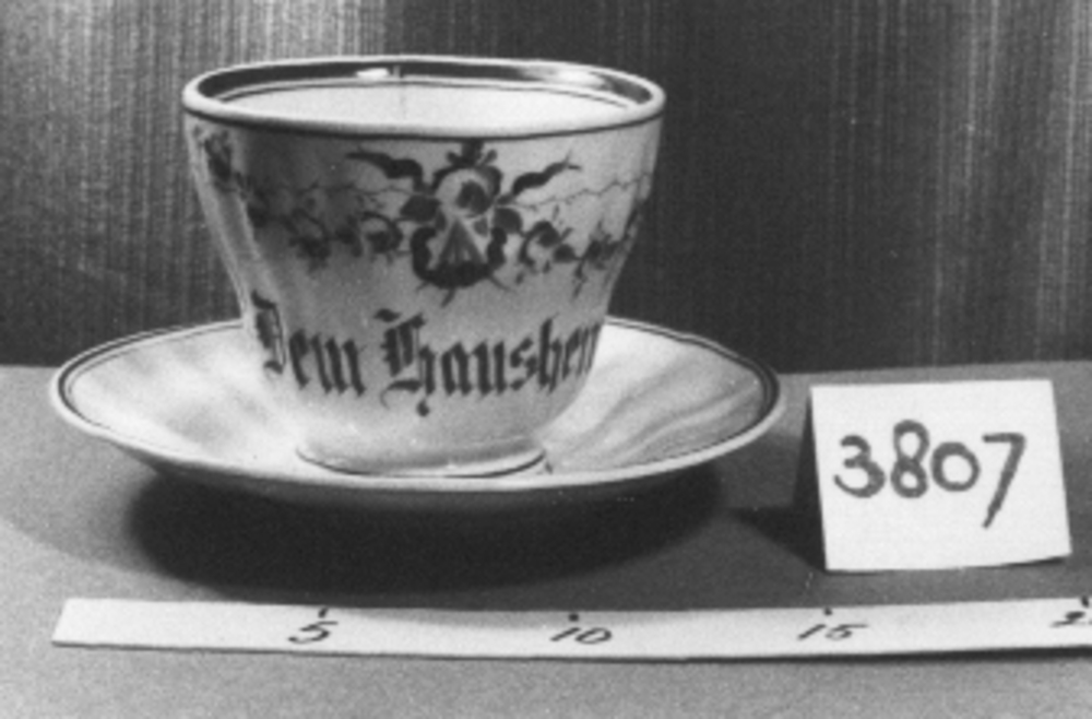 Kop en schotel 'Dem Hausherrn' porselein circa 1900