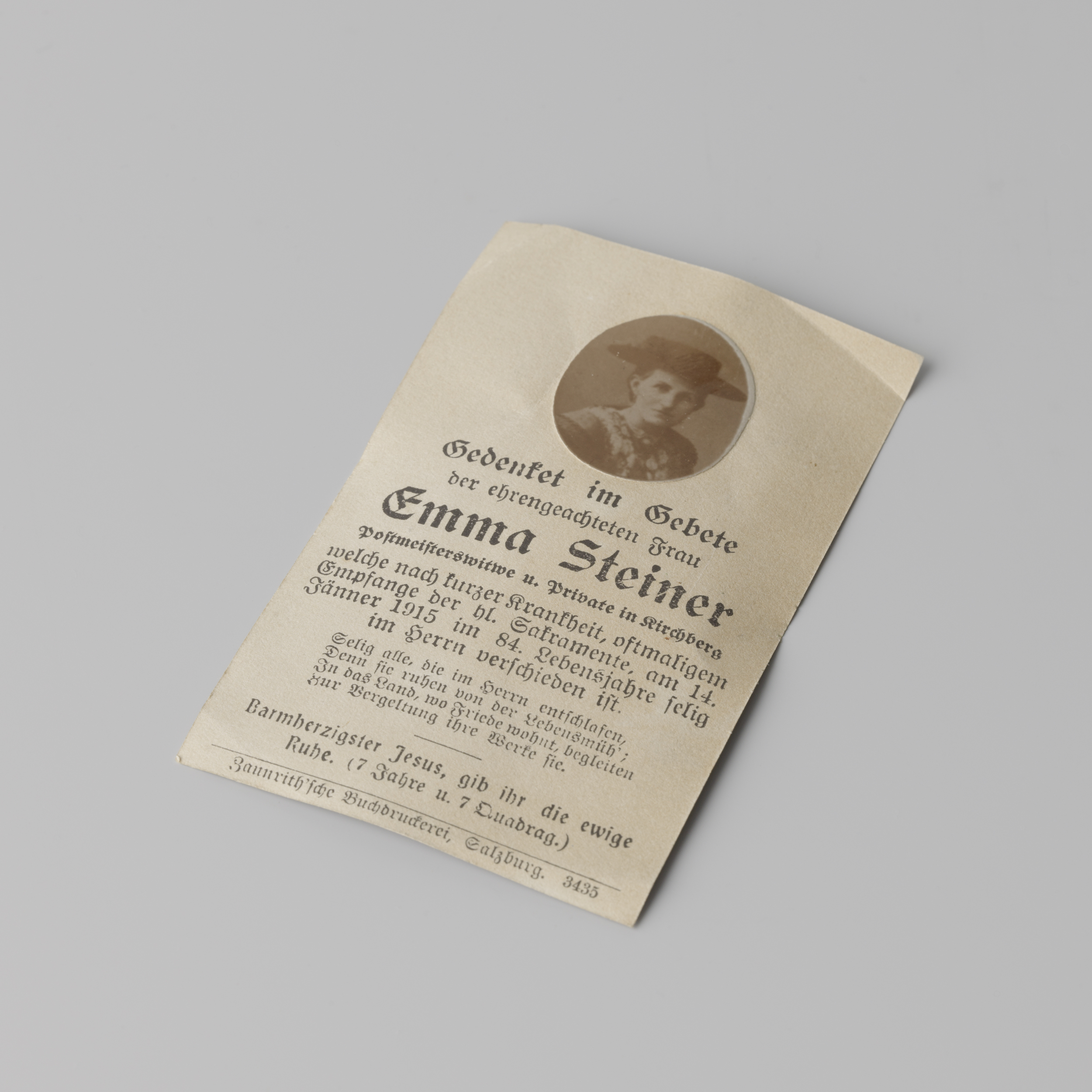Bidprent met portret van Emma Steiner